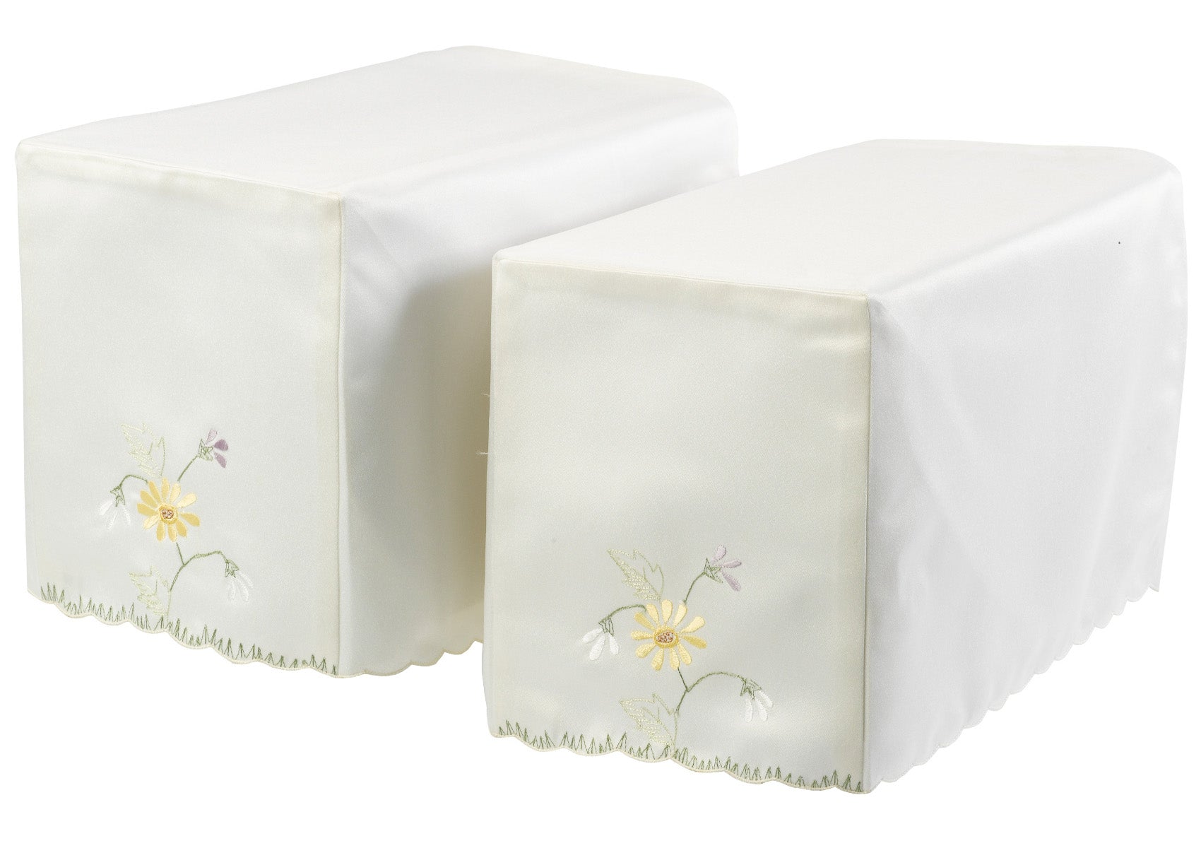 - Details: These traditional cream arm caps have an embroidered floral garden pattern with a scalloped trim and would be ideal for protecting your sofas or arm chairs. Please select either a pair of arm caps or a chair back.