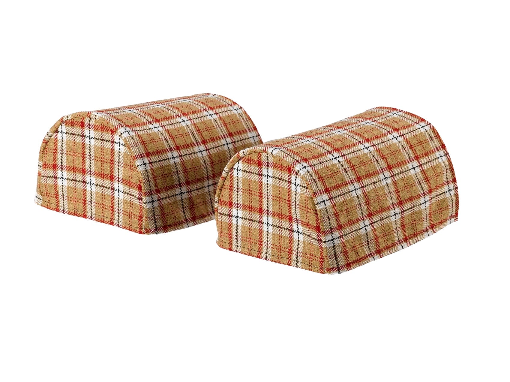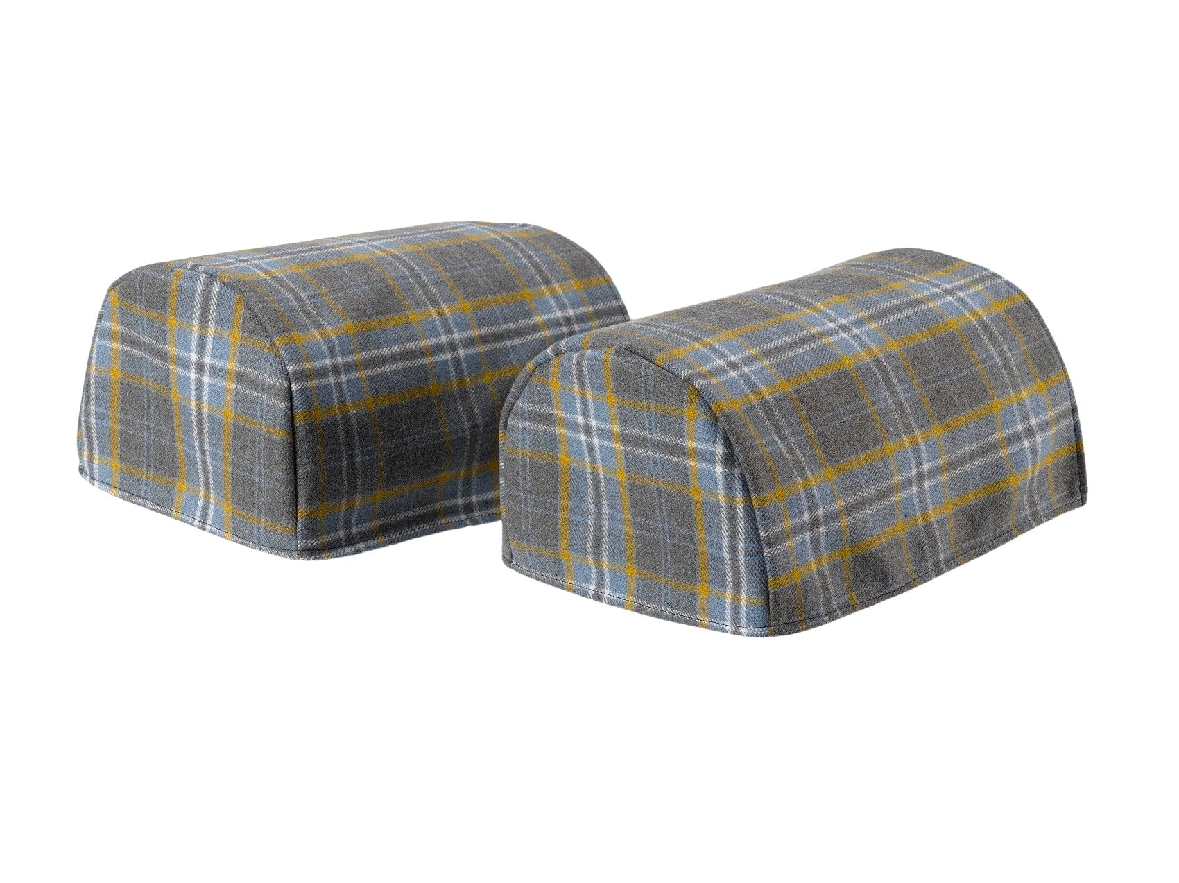 These checked round arm caps and chair backs are perfect for preventing soiling, staining or wear and tear on living room furniture such as sofas, settees and chairs.