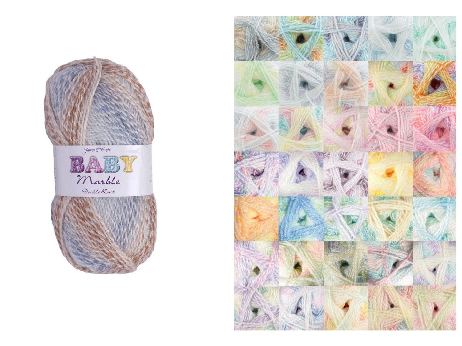 • Details: These James Brett 100g balls of baby marble double knitting wool have a marble effect when knitted up and are available in a wide range of shades.