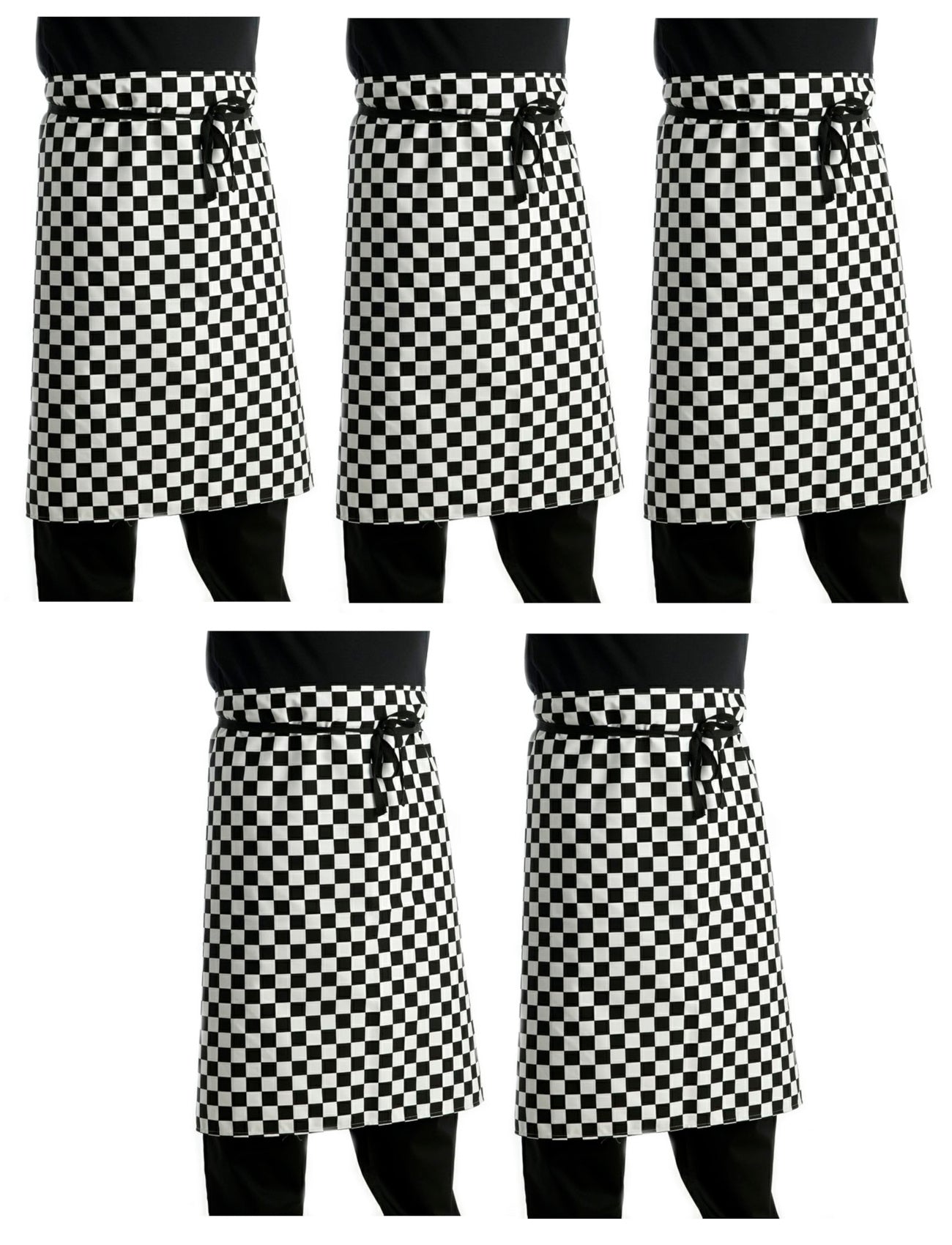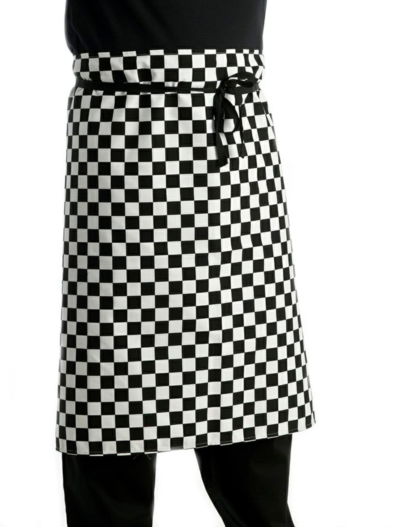 • Details: This chefs full apron has a traditional black and white checked pattern throughout.