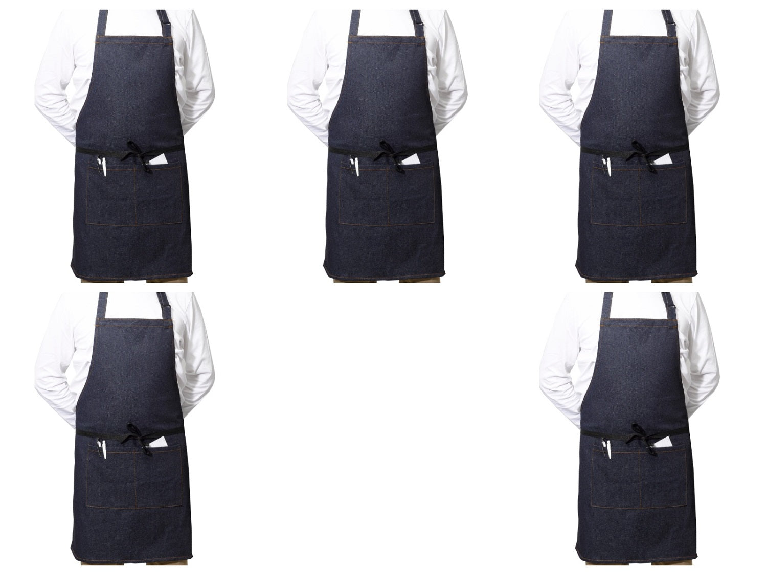 Blue Denim 100% Cotton Bib Apron With Split Pocket 27" x 31" (Pack of 1 or 5)