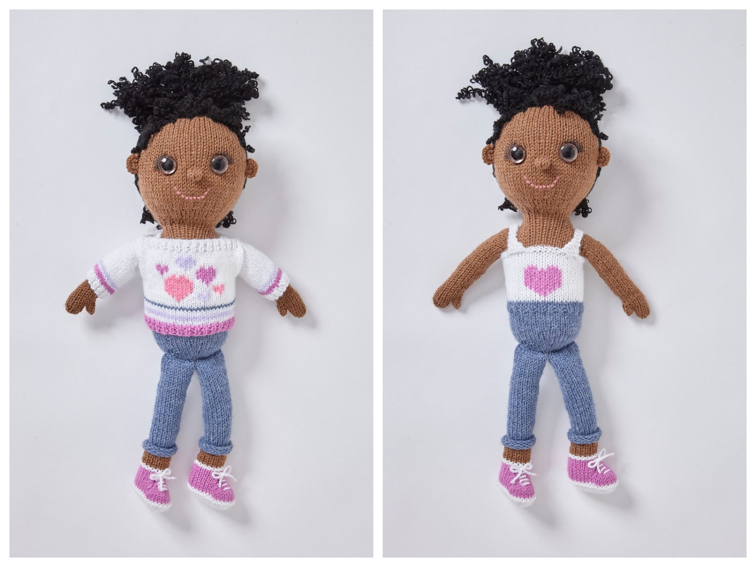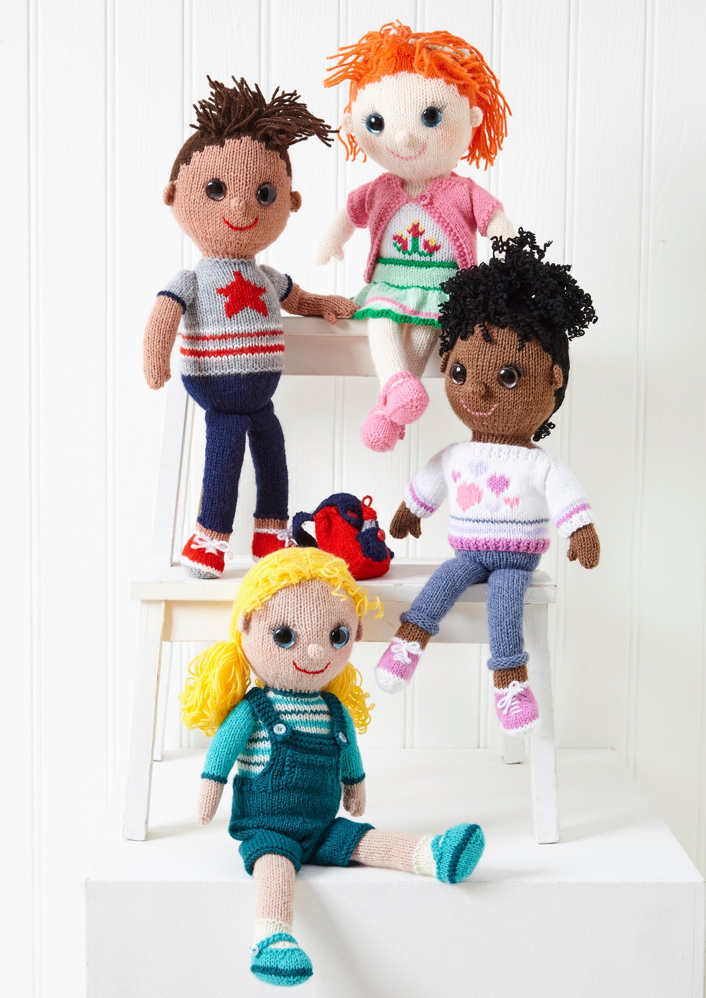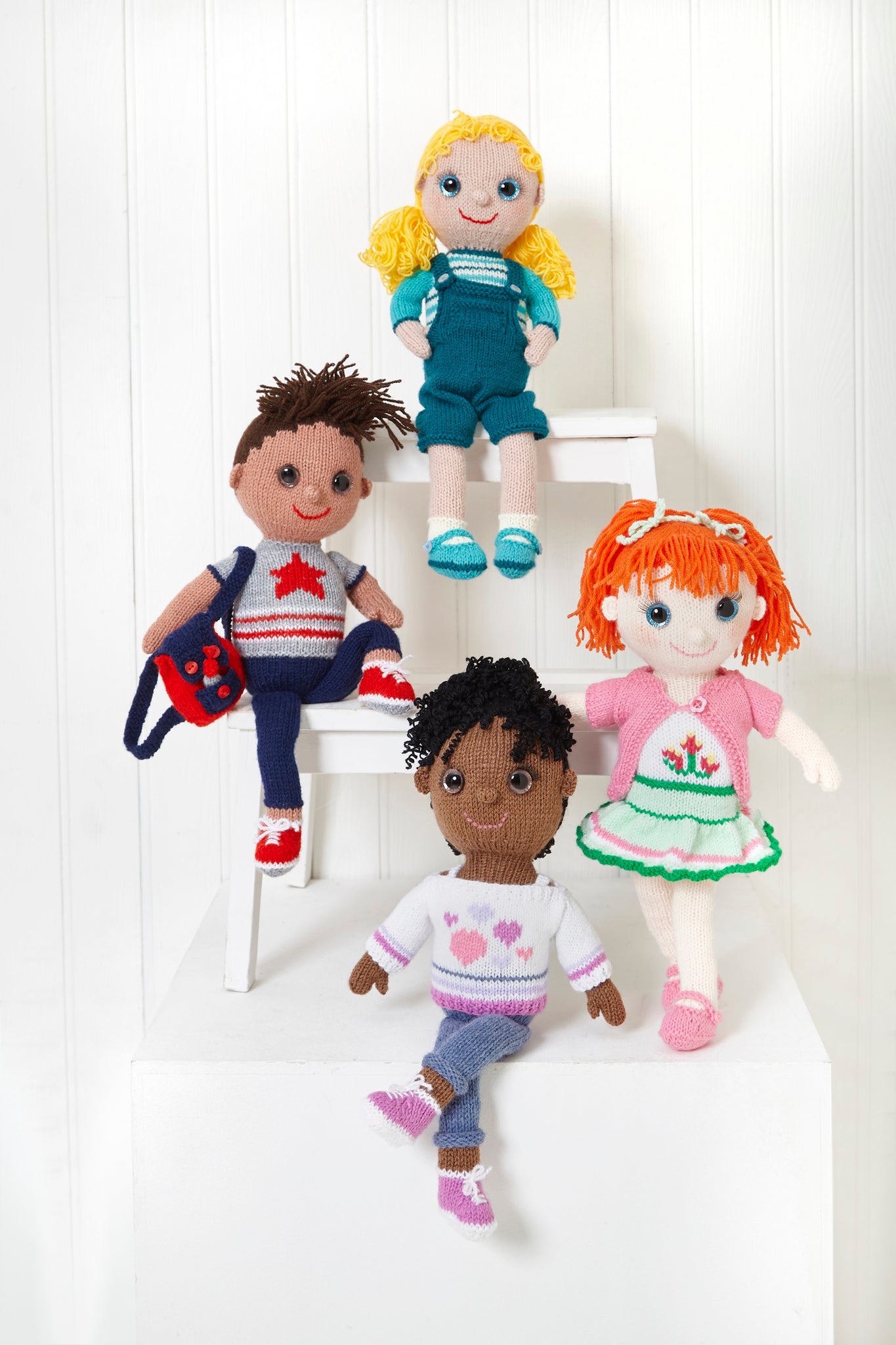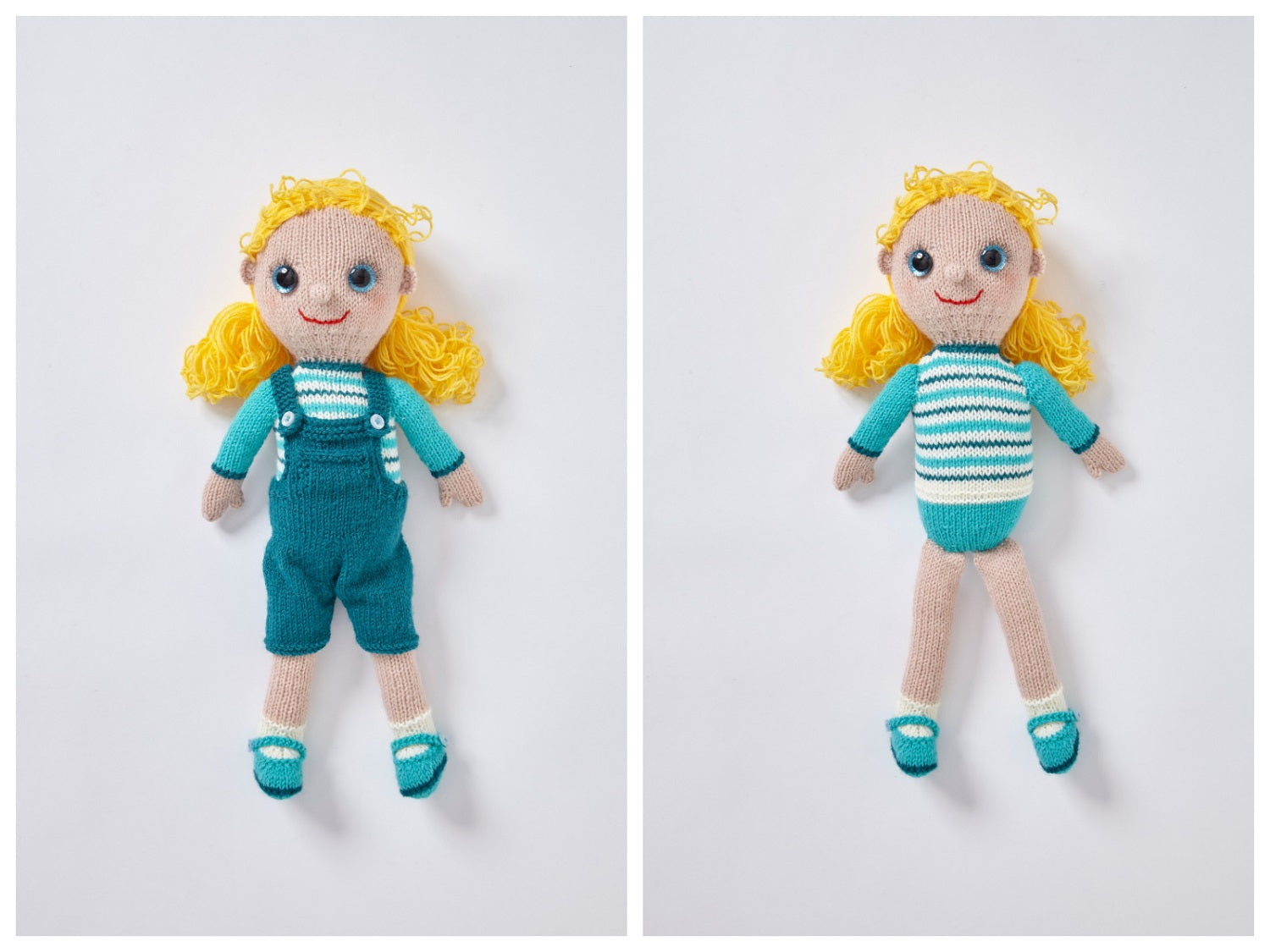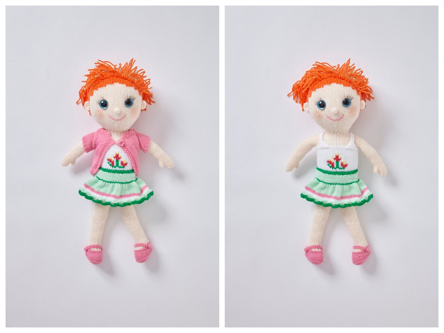 These cute dolls would make great playtime pals or gifts and are sure to be well loved by everyone. They are also fun to make for knitters.