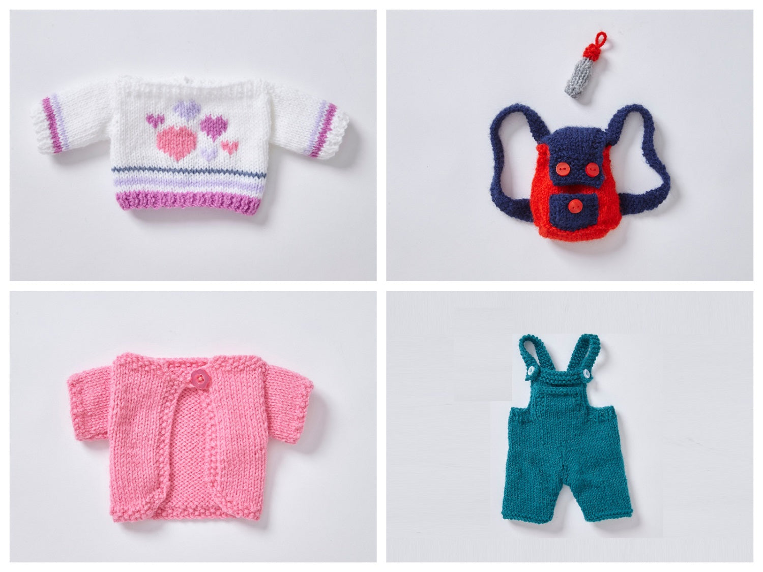 Each design can be made using double-knit yarn, with the needles required for each individual pattern indicated throughout the booklet.
