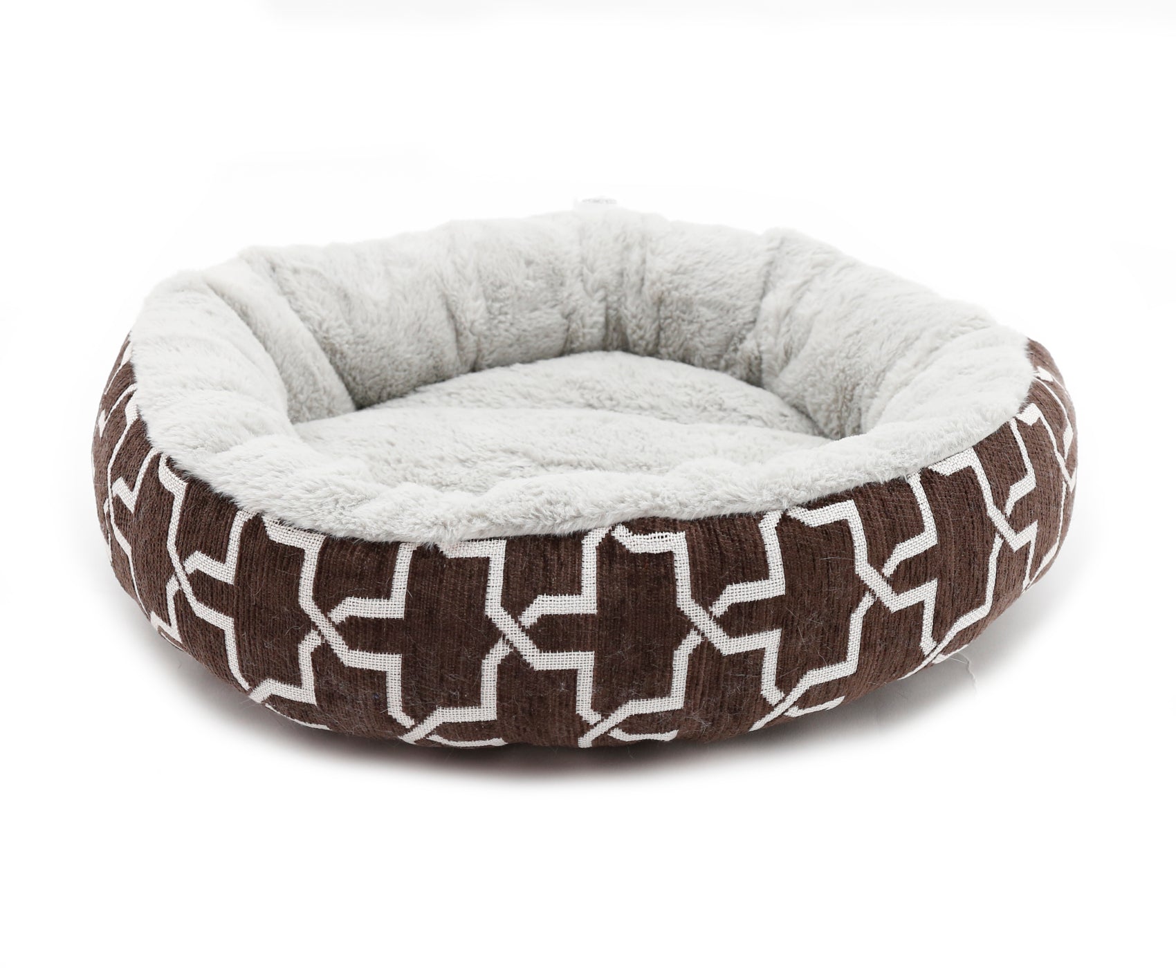 • Details: These donut style beds have a chenille outer with a modern abstract pattern and a cosy faux fur inner to keep your cat or small dog warm during the cold winter months and to give them a feeling of security.