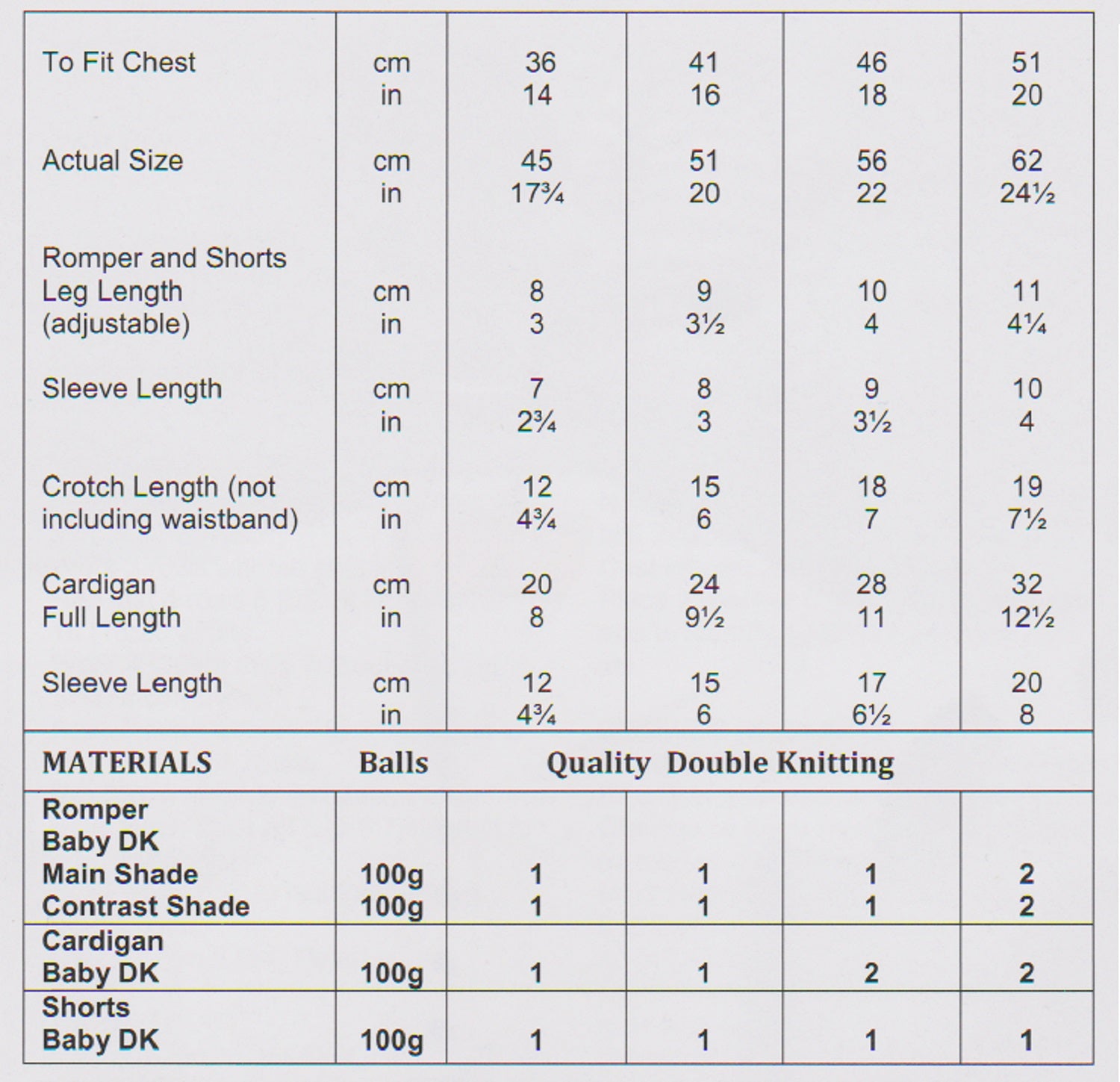 Details: This James Brett knitting pattern instructs you how to knit a babies romper, cardigan & shorts, using Baby DK yarn.