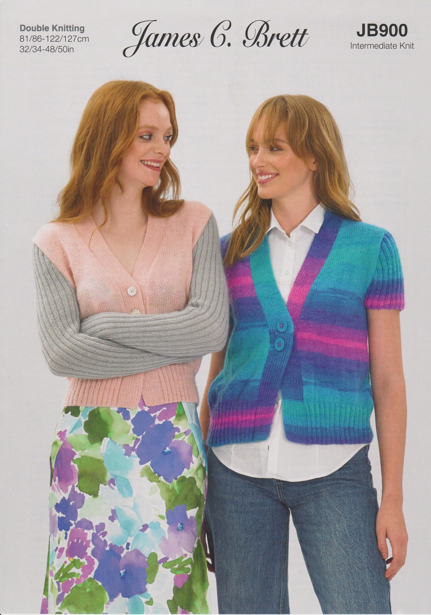 • Details: This James Brett knitting pattern instructs you how to knit women’s sweaters in two different styles, using Shh DK yarn.