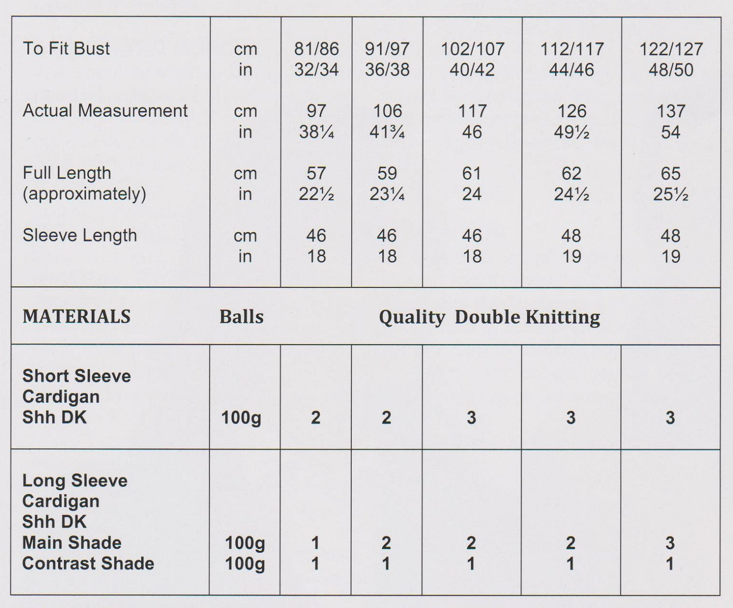 See image provided for the number of 100g balls of yarn required and the colours illustrated in the leaflet.
