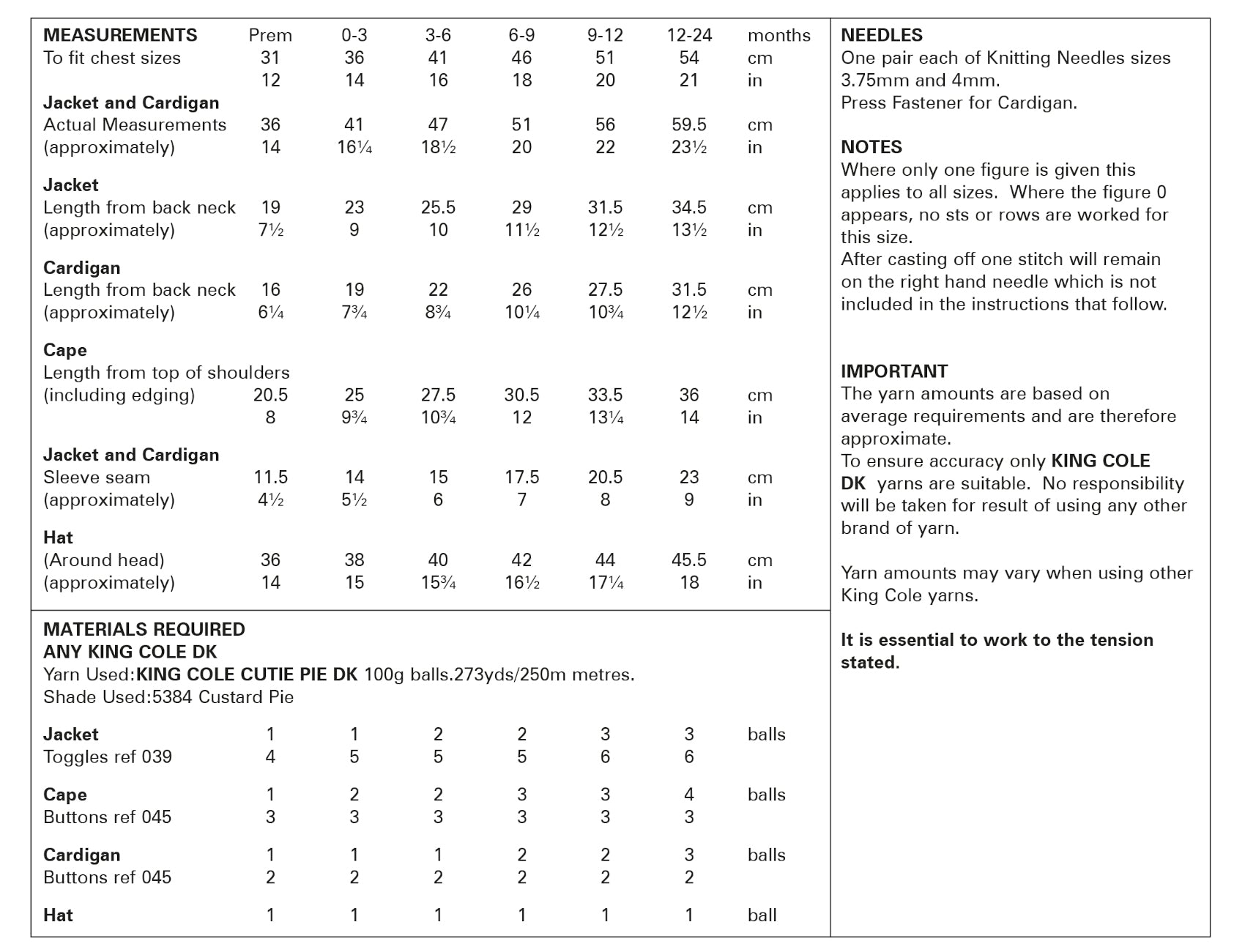 This King Cole knitting pattern is suitable for use with most double knit yarns, however tensions may vary and we recommend you knit a tension square before knitting the whole garment.