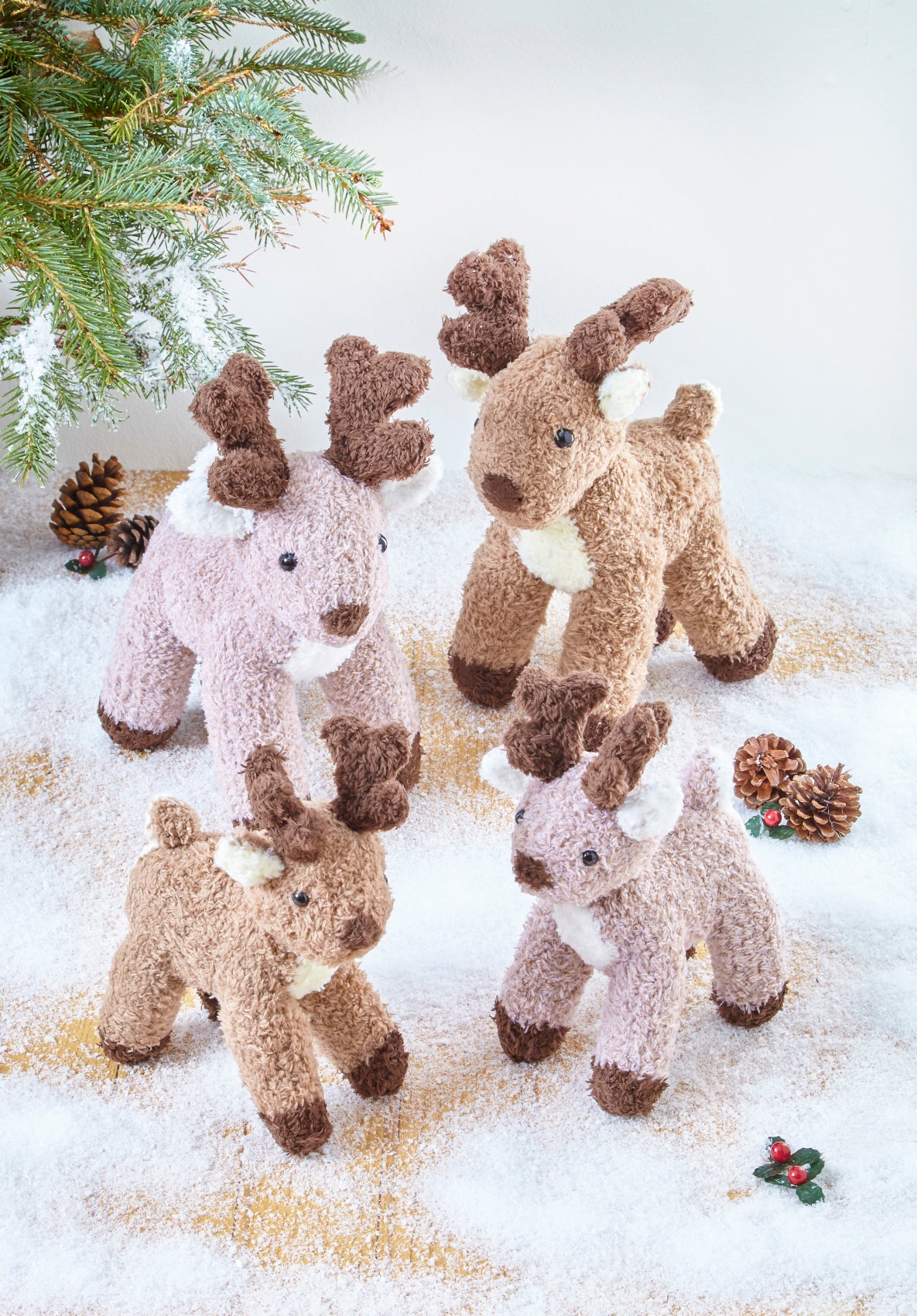 The pattern gives you instructions to create the reindeer in the following sizes: