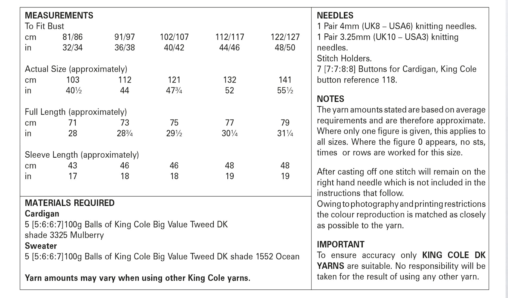 - Details: This is a King Cole double knit knitting pattern that instructs you on how to knit a lady's cardigan and sweater with split side hems, using Big Value Tweed DK yarn.