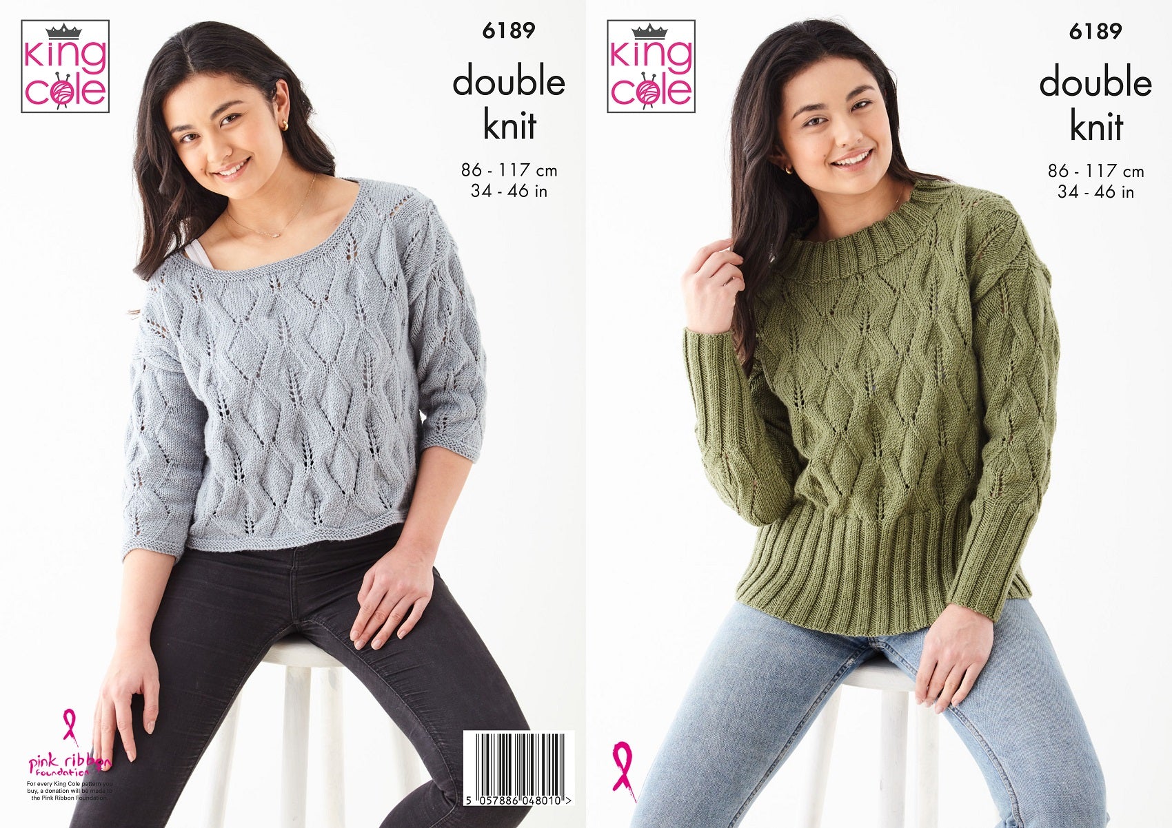 King Cole Double Knit Knitting Pattern Womens Sweaters 6189