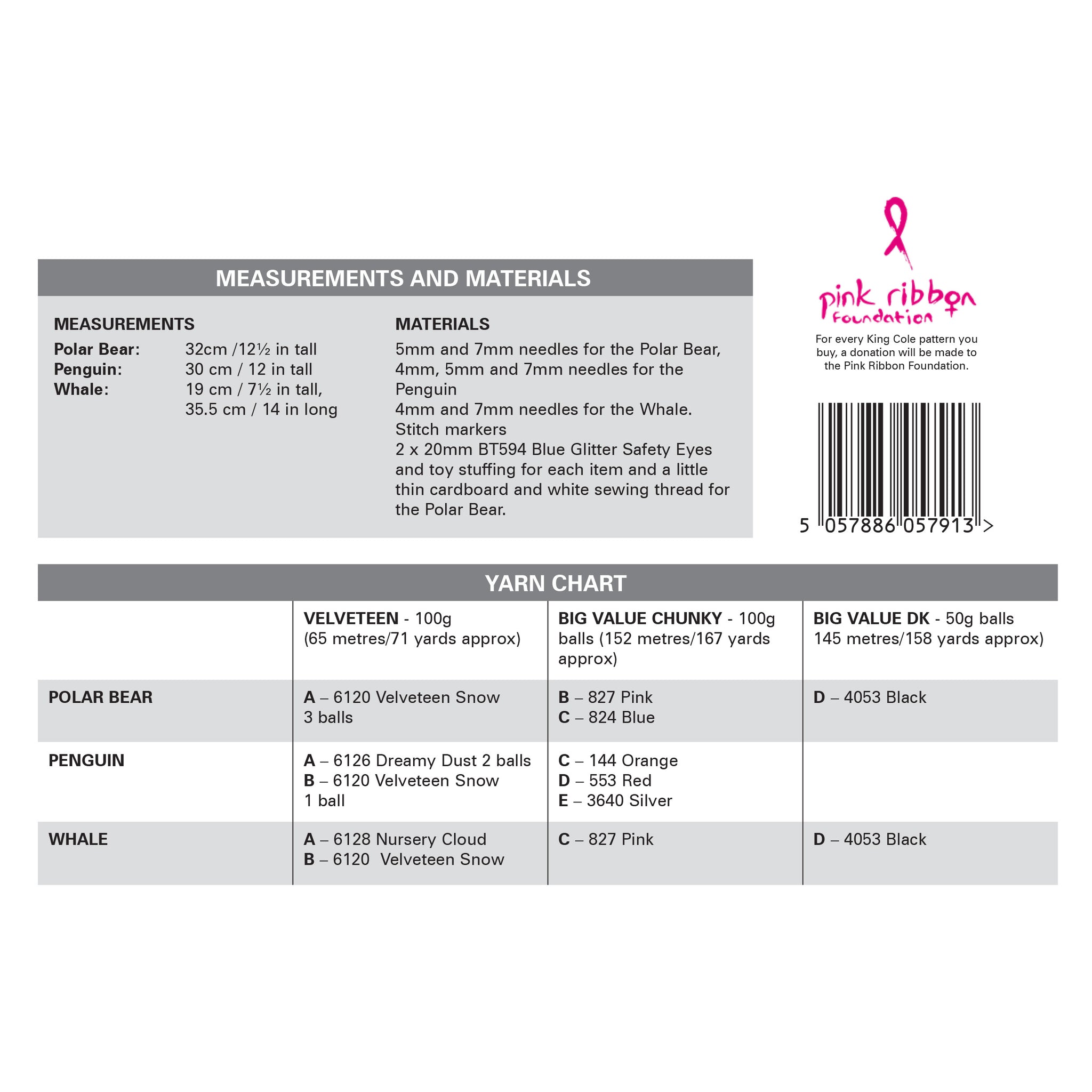This King Cole 9210 knitting pattern leaflet will instruct you how to knit toy Polar Creatures - Whale, Penguin and Polar Bear