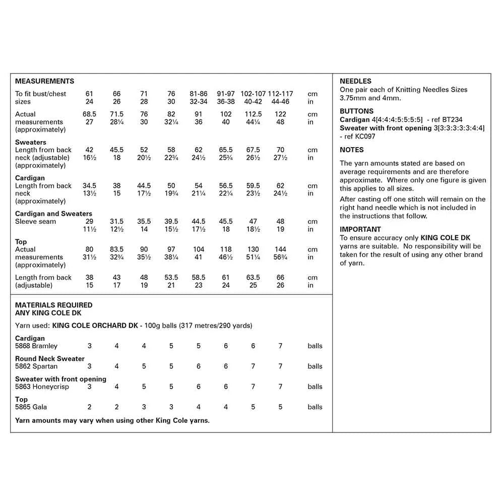 Details: This is a King Cole knitting pattern that instructs you on how to create a matching adult and children sweaters, top & cardigans, using Orchard DK yarn.