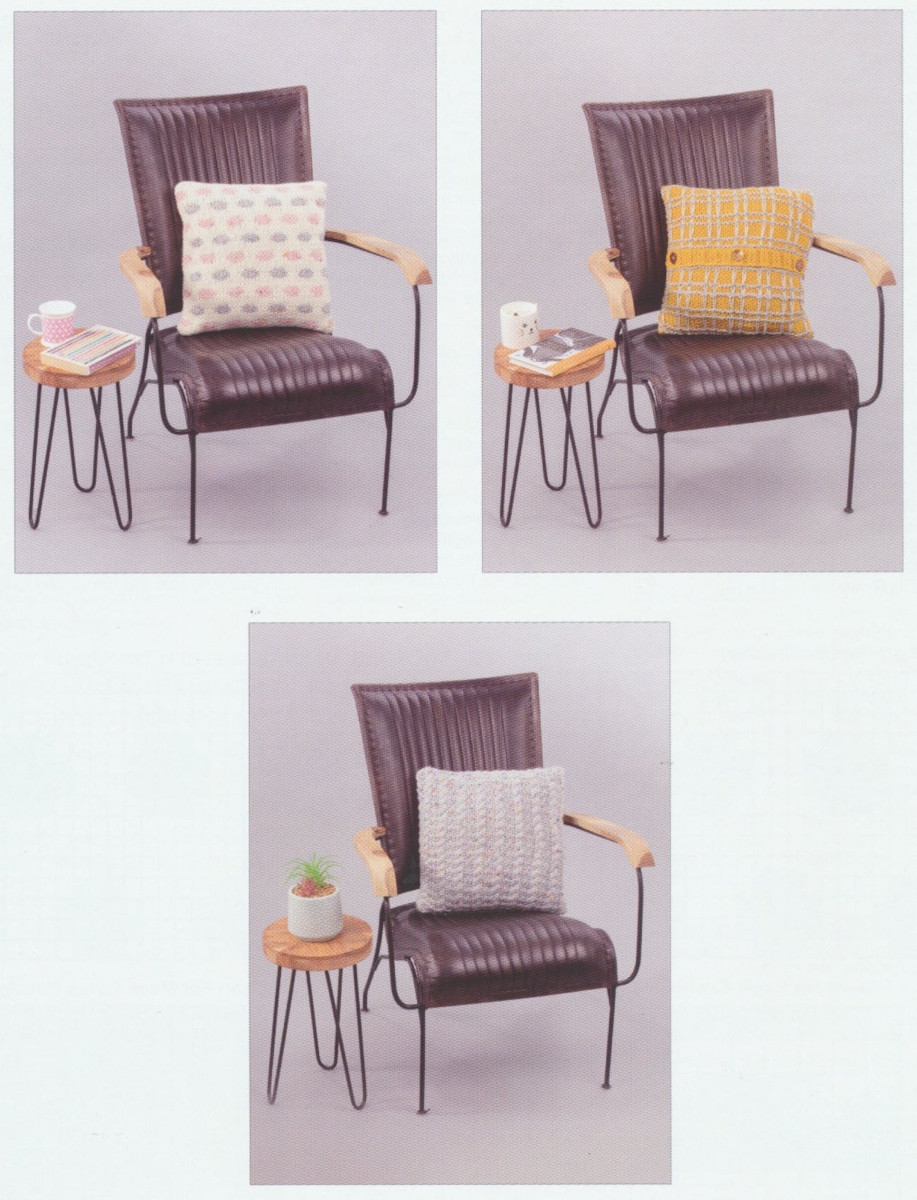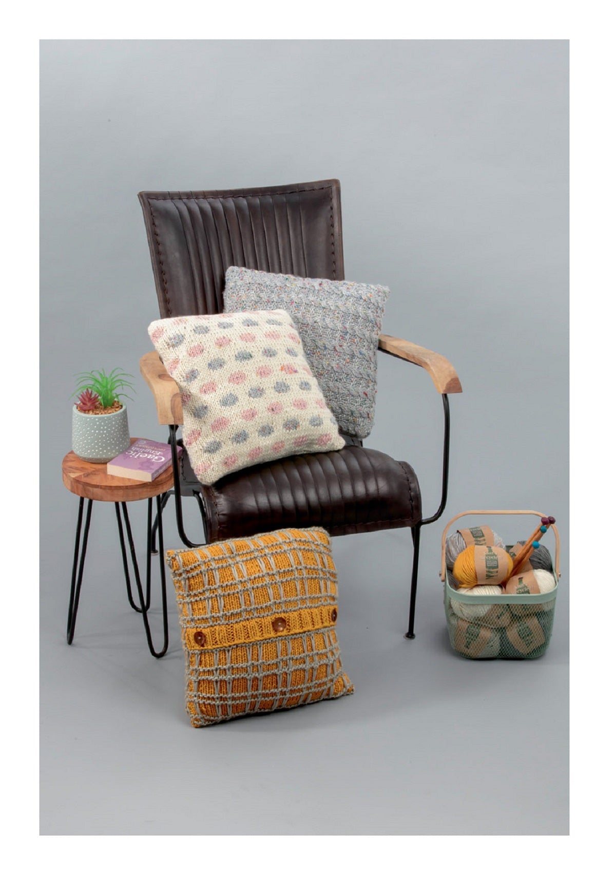 This Wendy super chunky knitting pattern leaflet 7009 will instruct you on how to create cushion covers in three different designs: mock tartan, spots or cable knit.