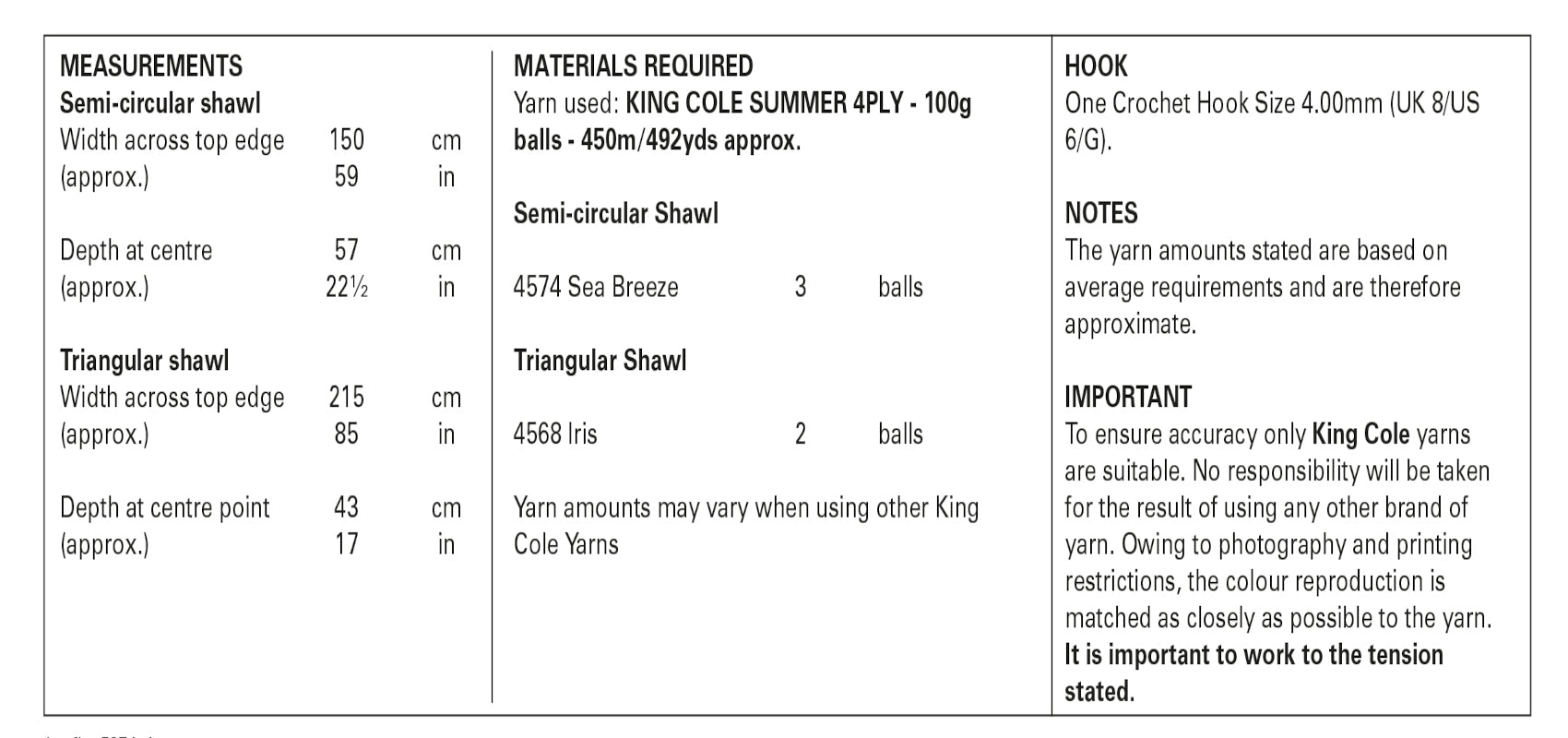 - Details: This is a King Cole 4ply crochet pattern that instructs you on how to knit a ladys semi-circular and triangular shawl, using Summer 4ply yarn.