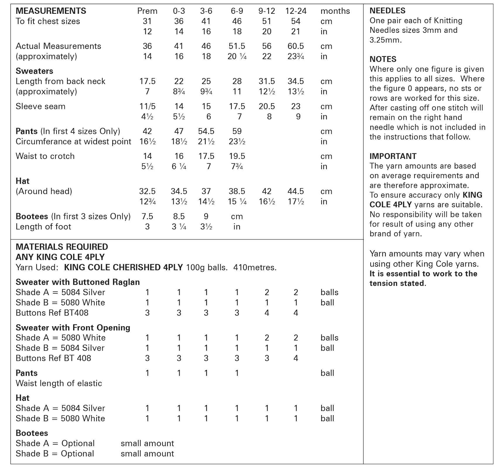 - Details: This is a King Cole baby 4ply knitting pattern that instructs you on how to knit a sweater, pants, hat and bootees, using Cherished 4ply yarn.