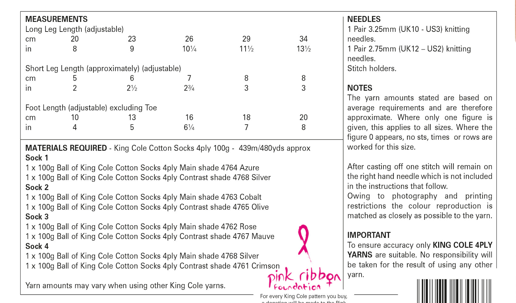 - Details: This is a King Cole 4ply knitting pattern that instructs you on how to knit childrens short or long length socks, using Cotton Socks 4ply yarn.