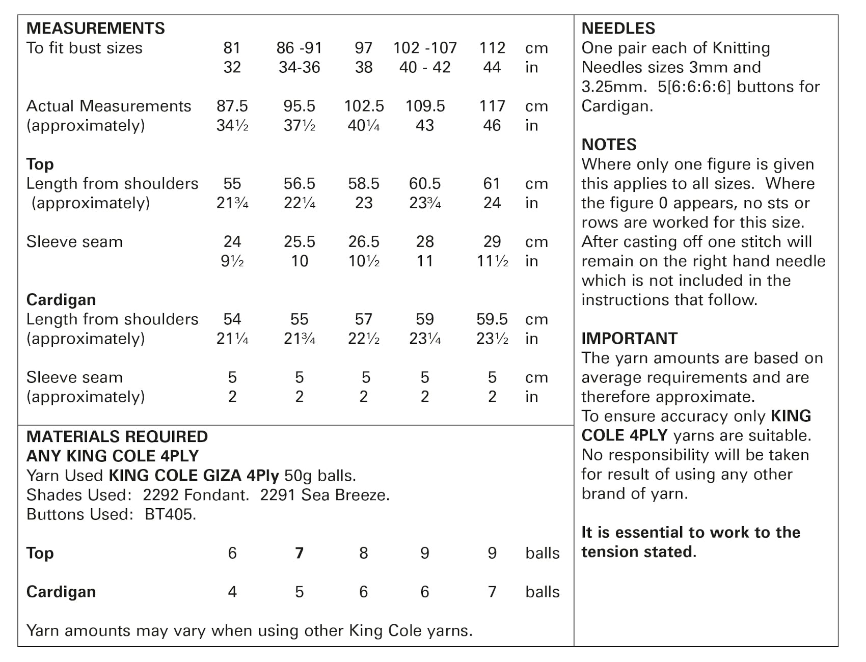 - Details: This is a King Cole double knit knitting pattern that instructs you on how to knit a lady's lace cardigan and top, using Giza Cotton 4ply yarn.