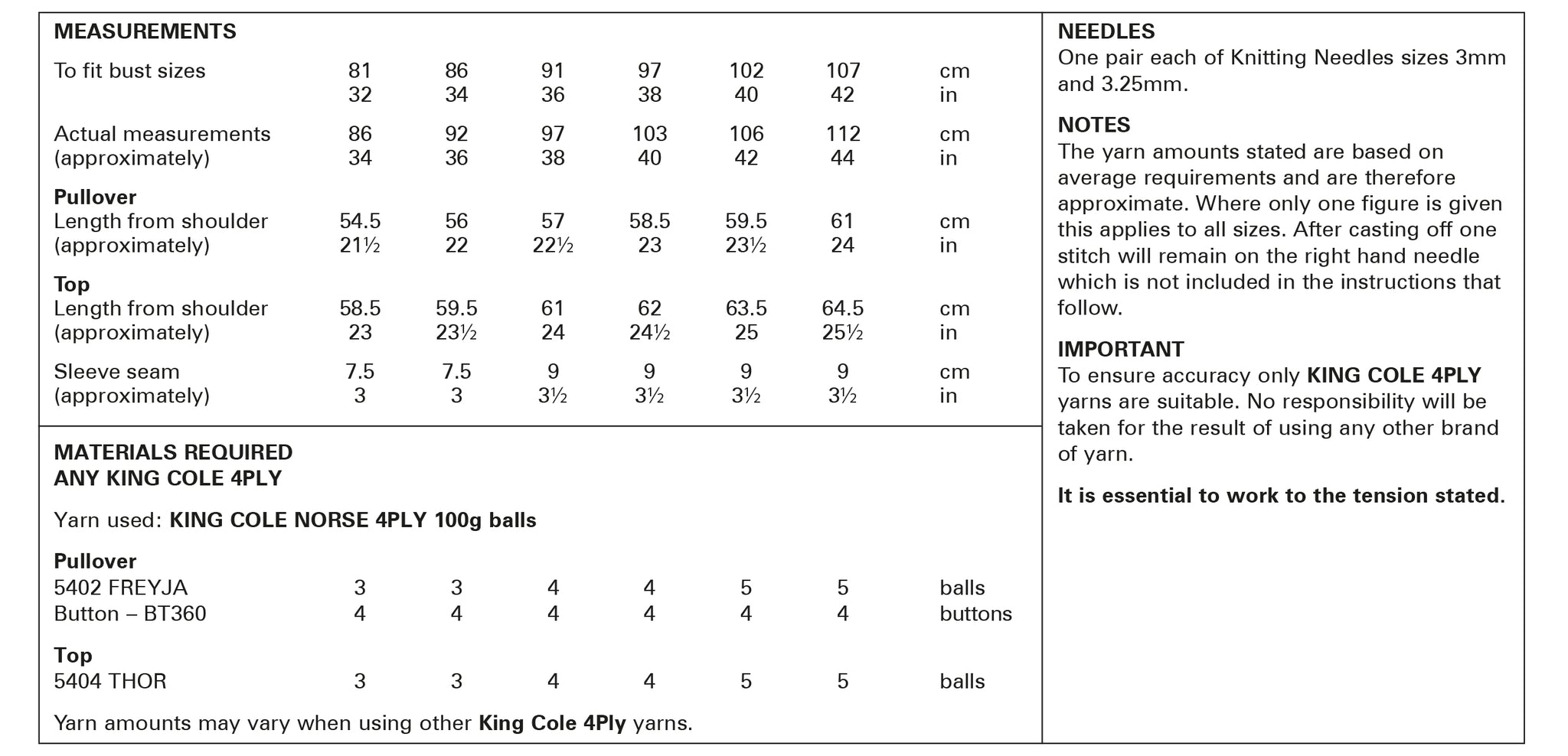 This King Cole knitting pattern is suitable for use with King cole 4ply yarns only. We recommend you knit a tension square before knitting the whole garment.