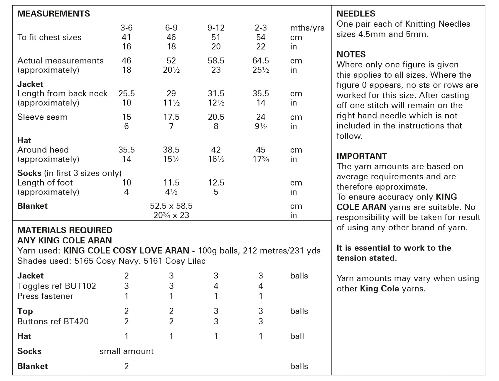 This King Cole knitting pattern is suitable for use with most aran yarns, however tensions may vary and we recommend you knit a tension square before knitting the whole garment.