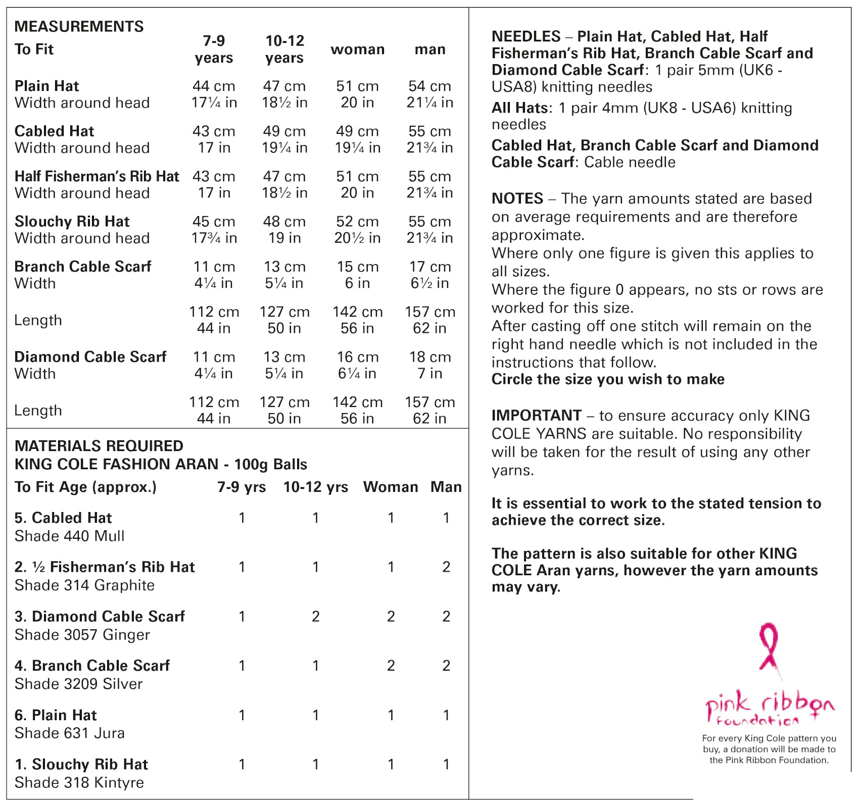 - Details: This is a King Cole knitting pattern that instructs you on how to knit a variety of hats and a cabled scarf, using Fashion Aran yarn.