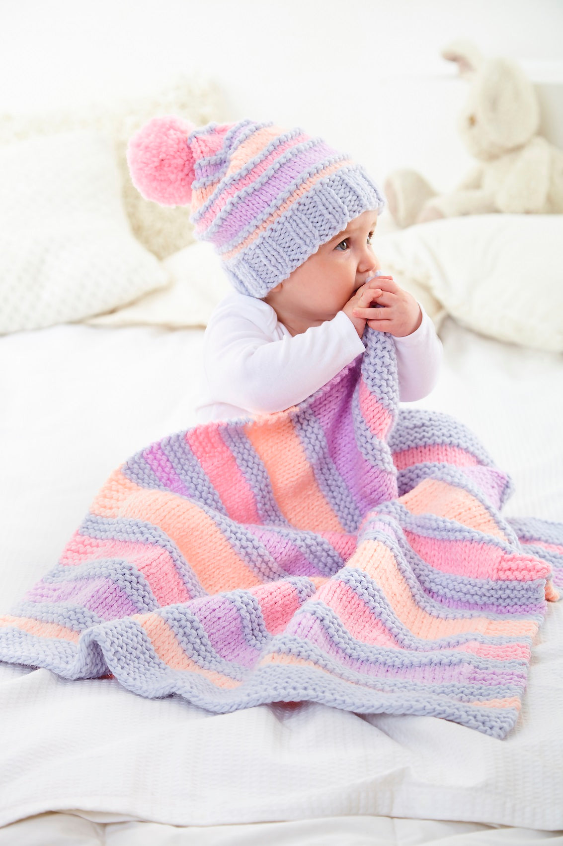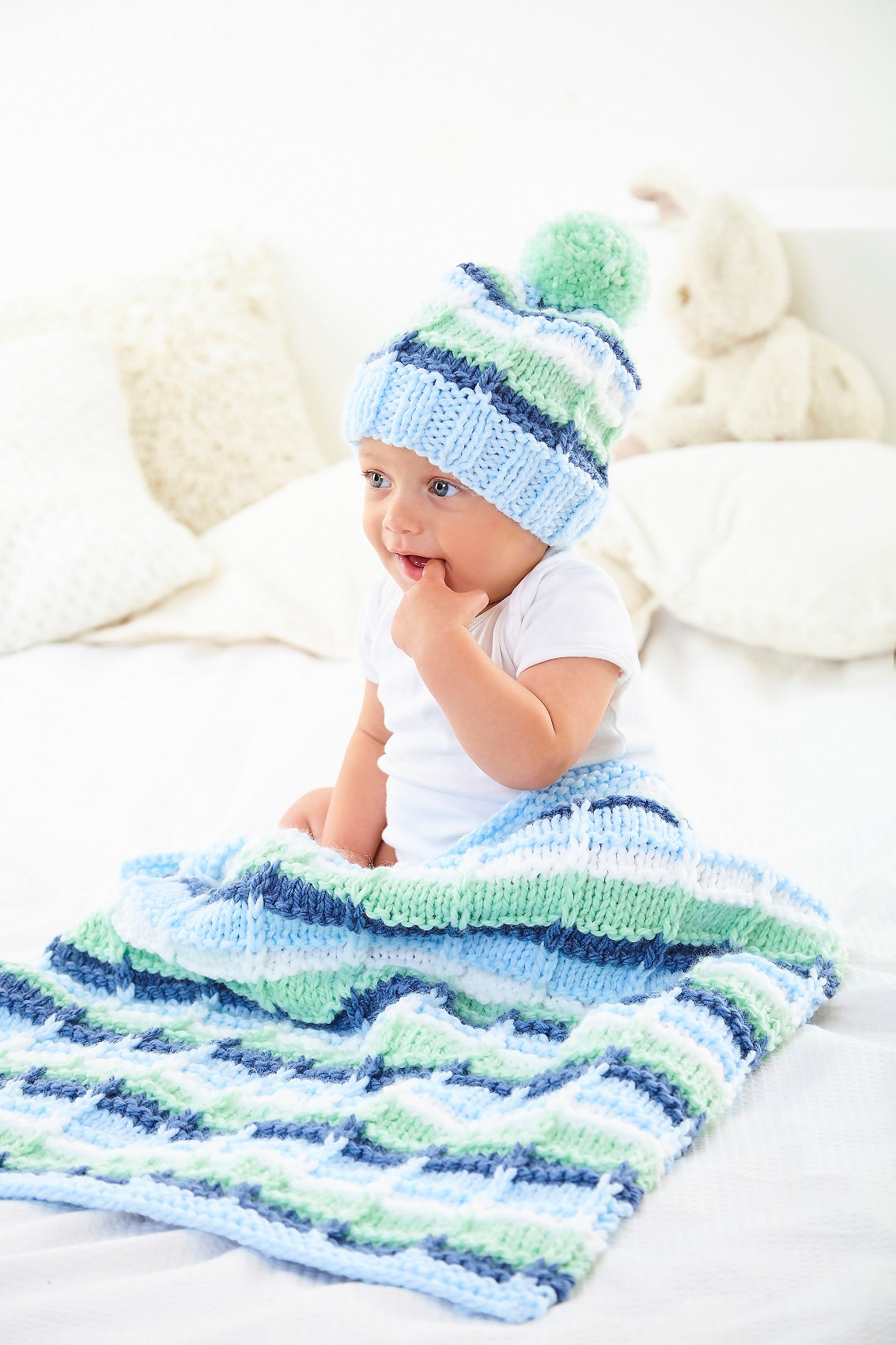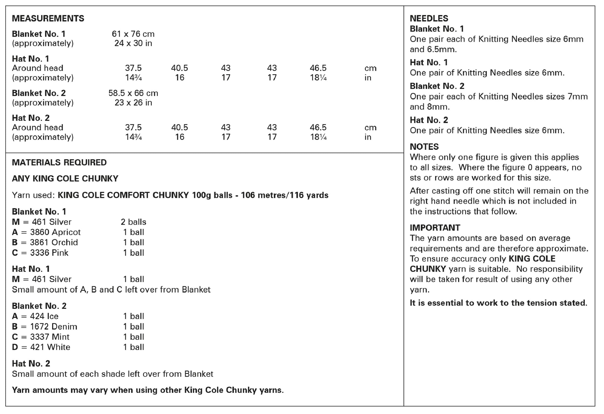 This babies chunky knitting pattern leaflet 6106 by King Cole will instruct you on how to create chunky blankets & hats.