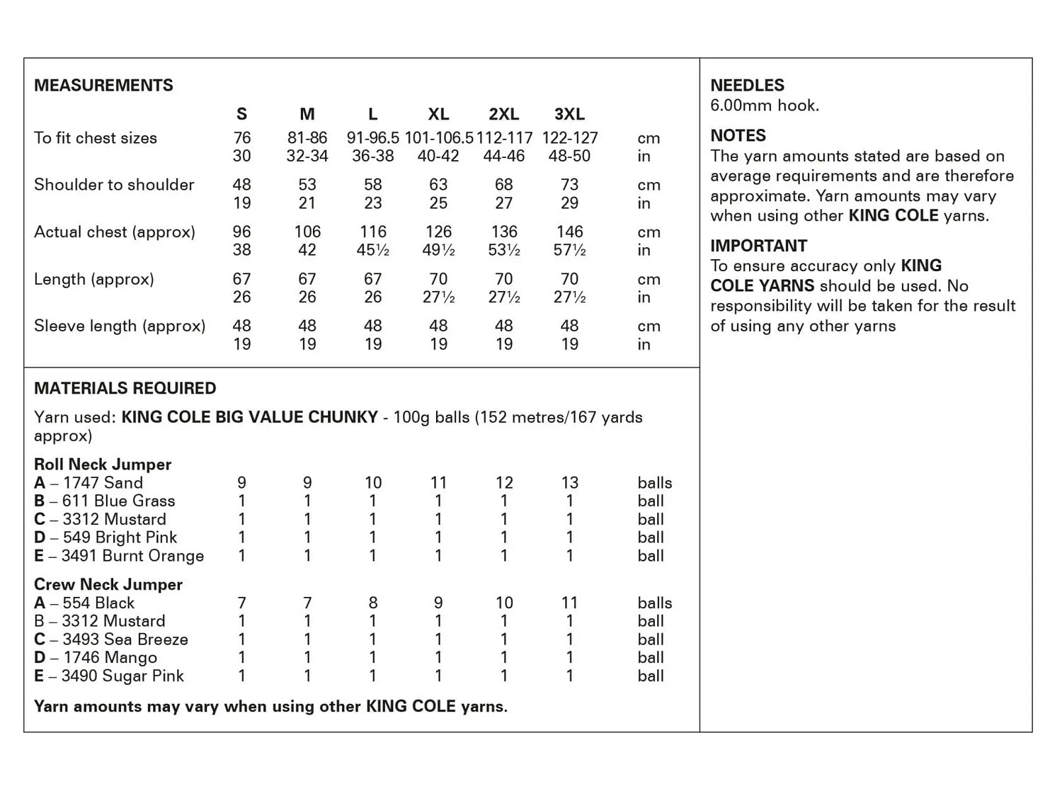 This King Cole pattern is suitable for use with most King Cole yarns, however tensions may vary and we recommend you knit a tension square before knitting the whole garment.