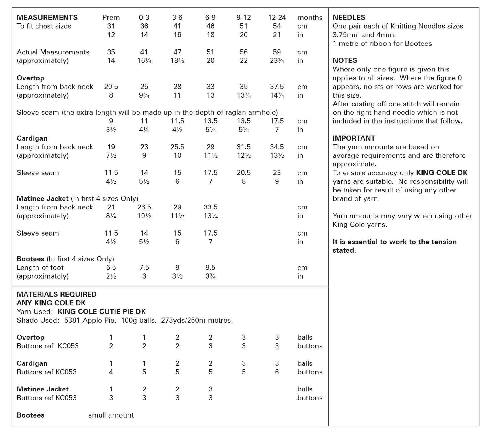 This King Cole knitting pattern is suitable for use with most double knit yarns, however tensions may vary and we recommend you knit a tension square before knitting the whole garment.