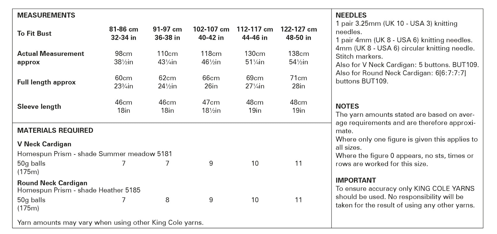 This King Cole knitting pattern is suitable for use with most double knit yarns, however tensions may vary and we recommend you knit a tension square before knitting the whole garment.