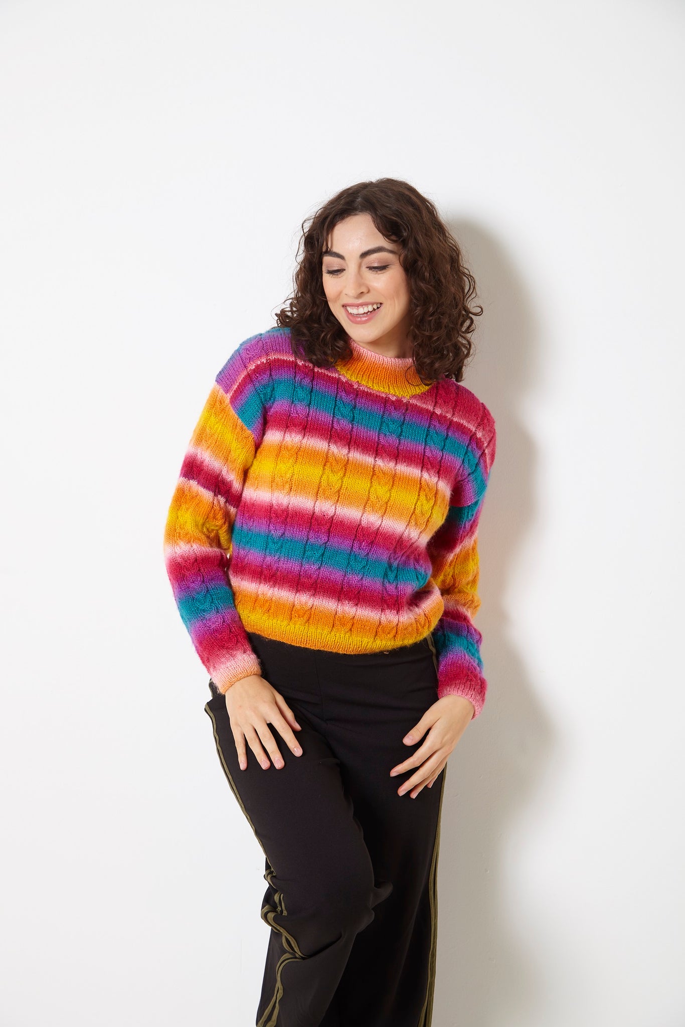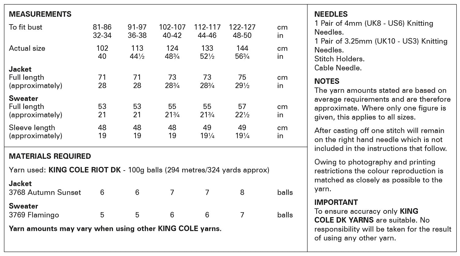 Details: This is a King Cole double knit pattern that instructs you how to knit a ladies vibrant jacket & sweater, using Riot DK yarn.