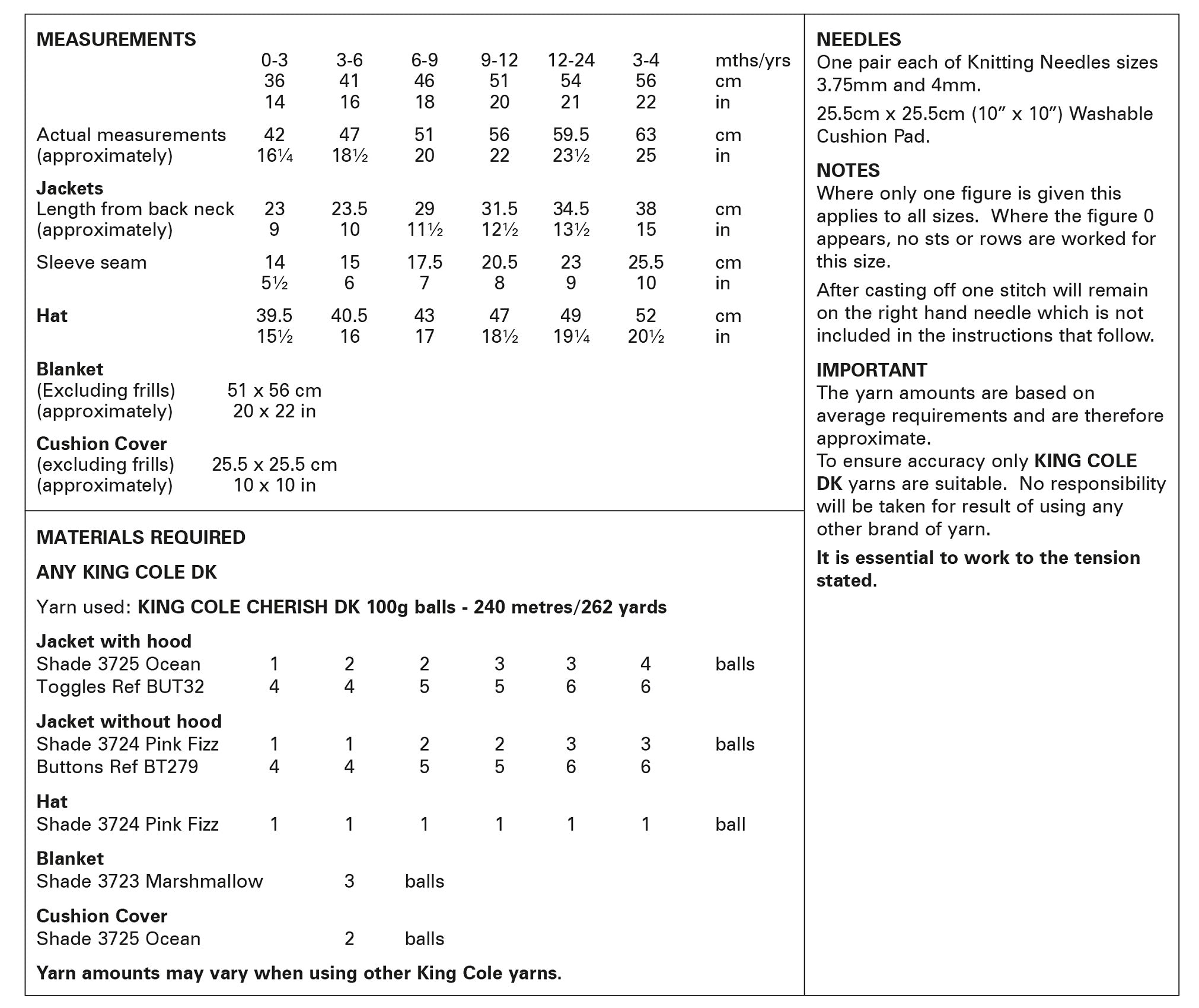This King Cole knitting pattern is suitable for use with most double knit yarns, however tensions may vary and we recommend you knit a tension square before knitting the whole garment.