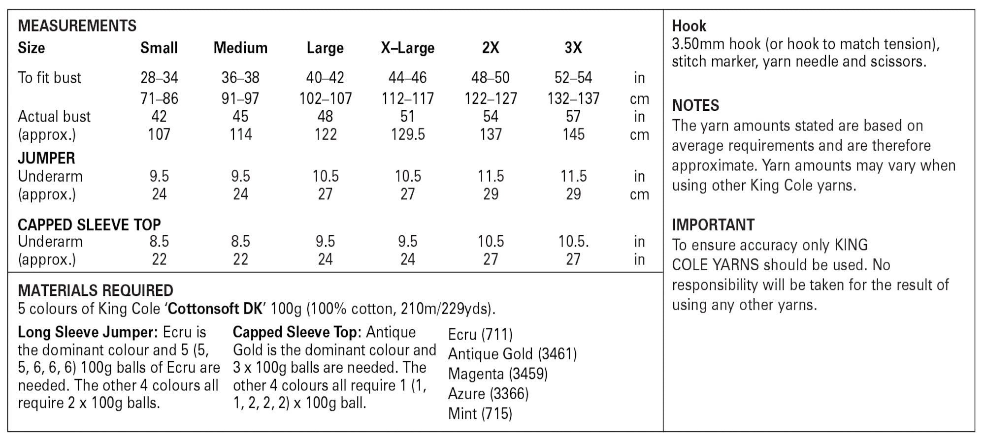 This King Cole crochet pattern is suitable for use with most double knit yarns, however tensions may vary and we recommend you crochet a tension square before knitting the whole garment.