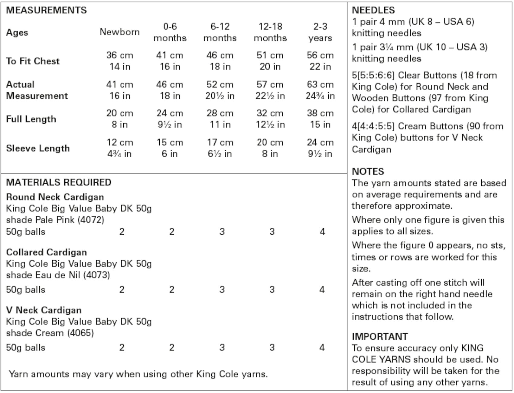- Details: This is a King Cole baby knitting pattern that instructs you on how to knit a cardigan with a round neck, v neck or collar, using Big Value Baby DK yarn.