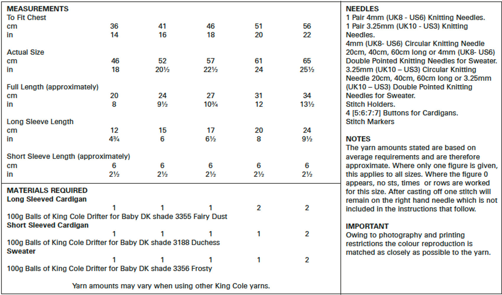 - Details: This is a King Cole baby knitting pattern that instructs you how to knit a long or short sleeved cardigan and a sweater, using Drifter for Baby DK yarn.