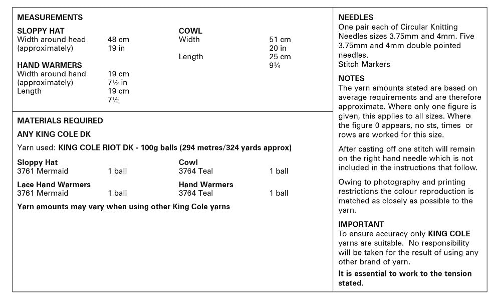This knitting pattern is suitable for use with King Cole yarns only. Tensions may vary and we recommend you knit a tension square before knitting the whole garment.