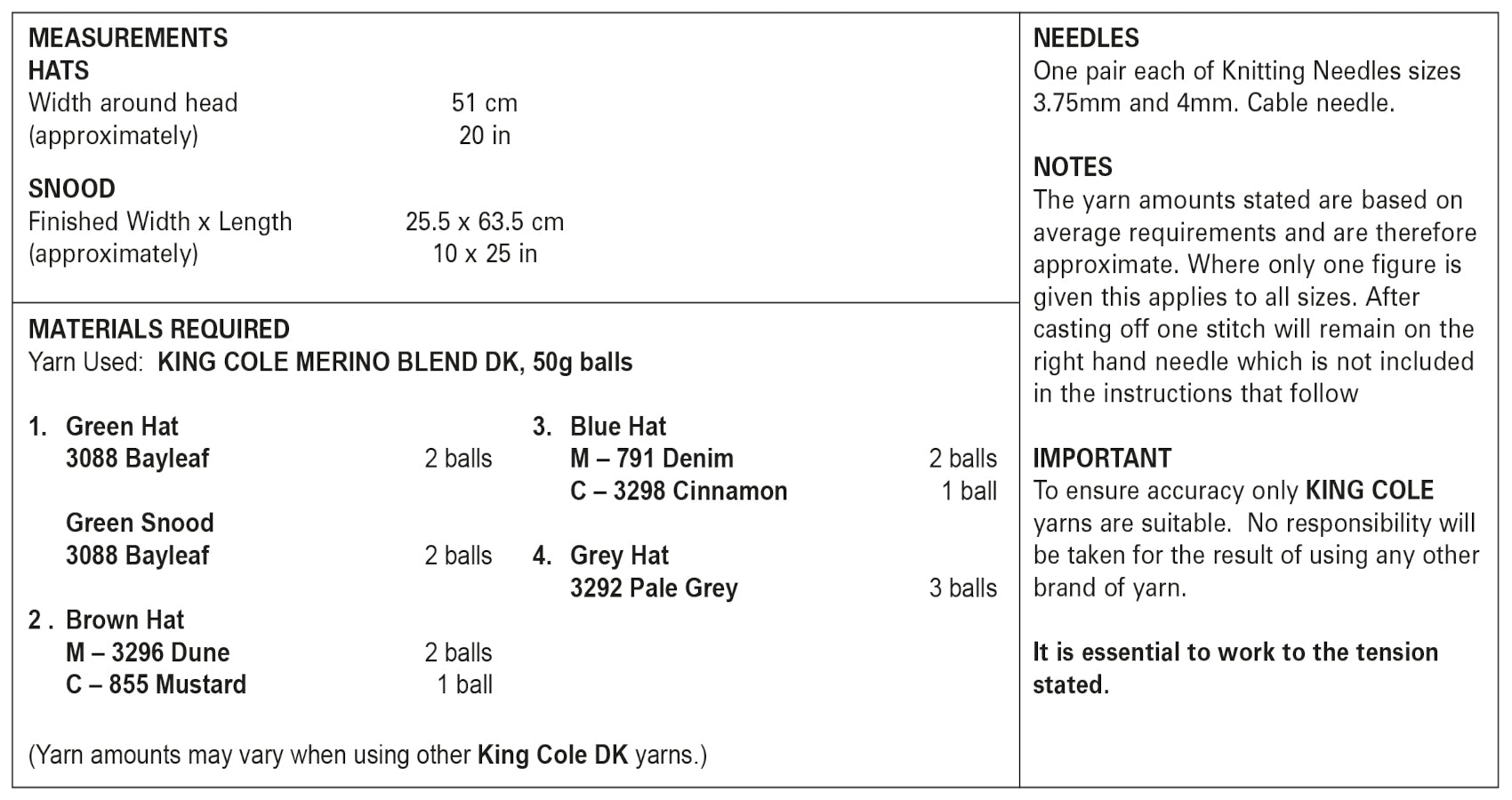 - Details: This is a King Cole knitting pattern that instructs you on how to knit a variety of mens accessories including hats and a snood, using Merino Blend DK yarn.