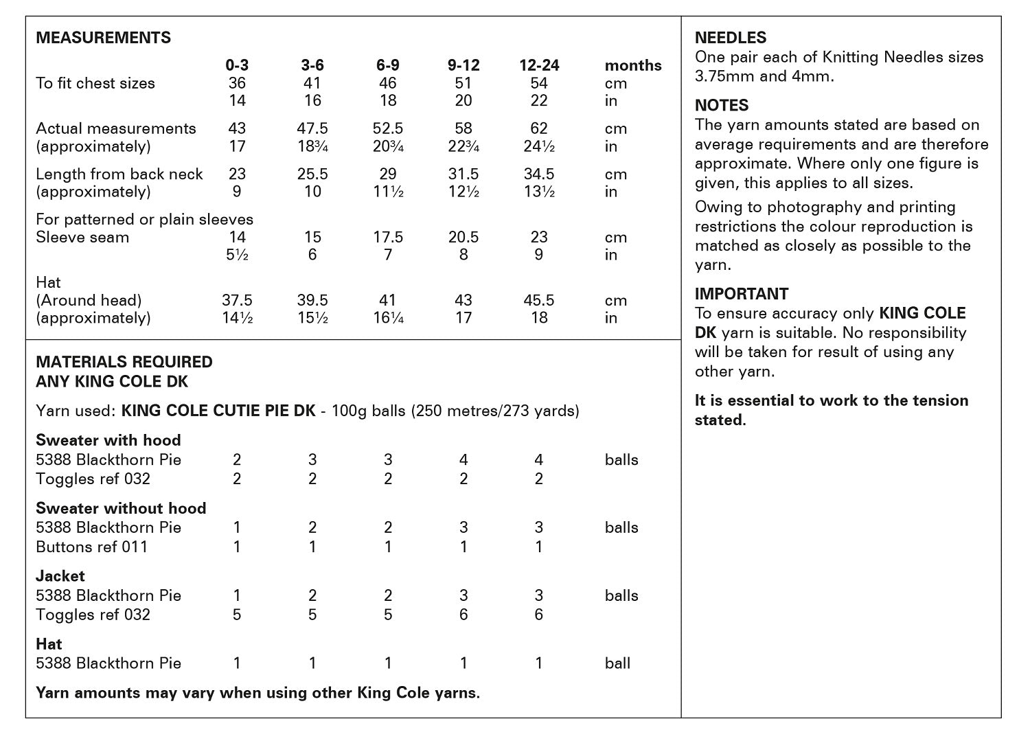 This King Cole knitting pattern is suitable for use with most double knit yarns, however tensions may vary and we recommend you knit a tension square before knitting the whole garment.