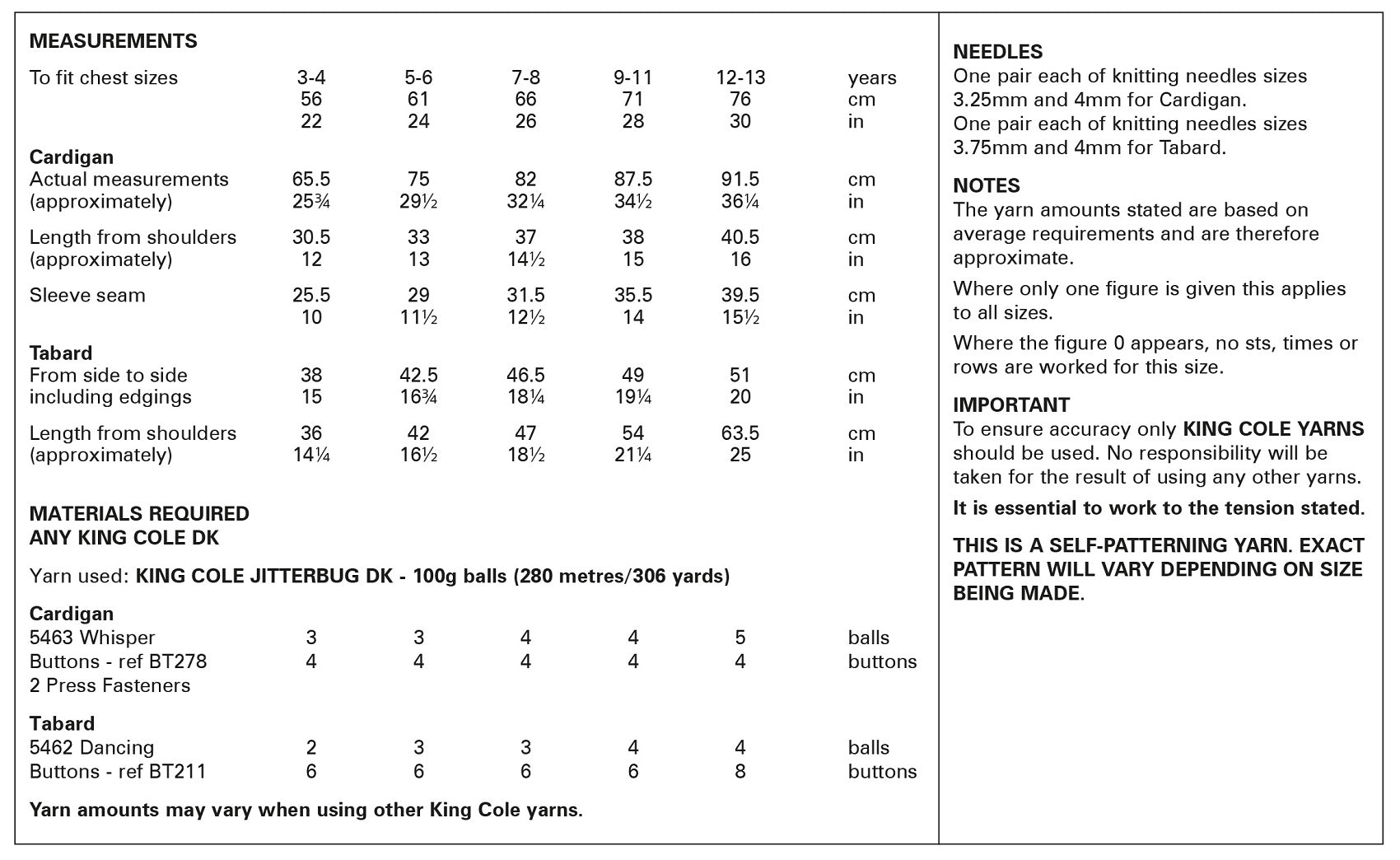 This King Cole knitting pattern is suitable for use with most King Cole double knit yarns; however, tensions may vary, and we recommend you knit a tension square before knitting the whole garment.