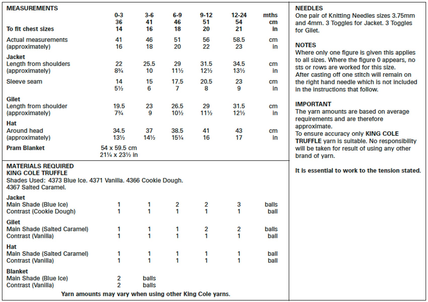 - Details: This is a King Cole baby knitting pattern that instructs you on how to knit a jacket, gilet, pram blanket and hat, using Truffle yarn.
