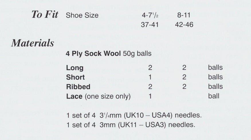 • Details: This is a Peter Gregory 4 ply knitting pattern that instructs you how to knit a selection of plain, ribbed & lace socks.