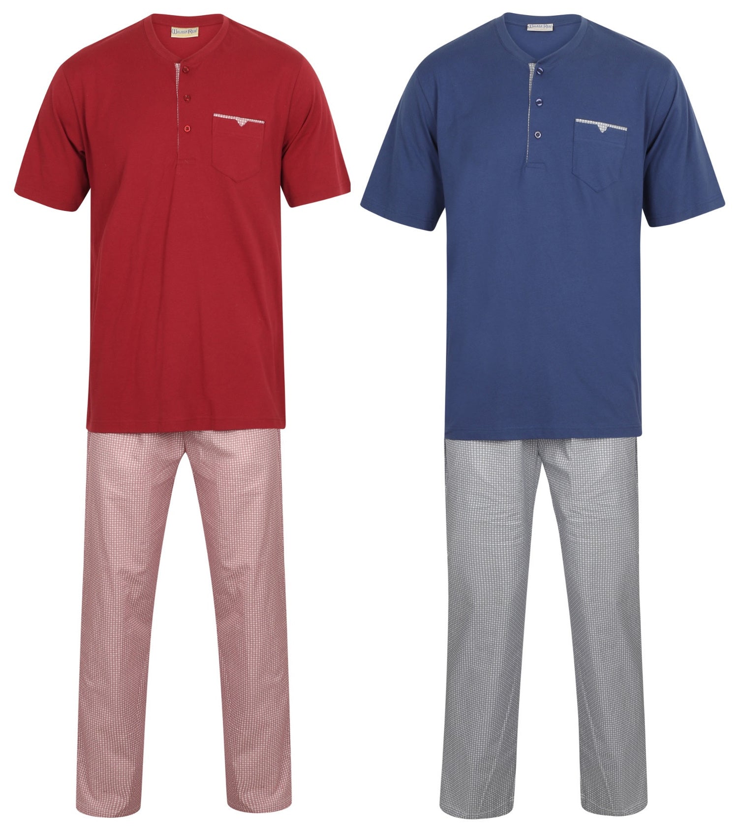 - Details: These traditional pyjamas from Walker Reid include a short sleeved jersey top and a pair of full length geo print pattern woven pyjama bottoms. They would be great for keeping you warm during the cooler nights.