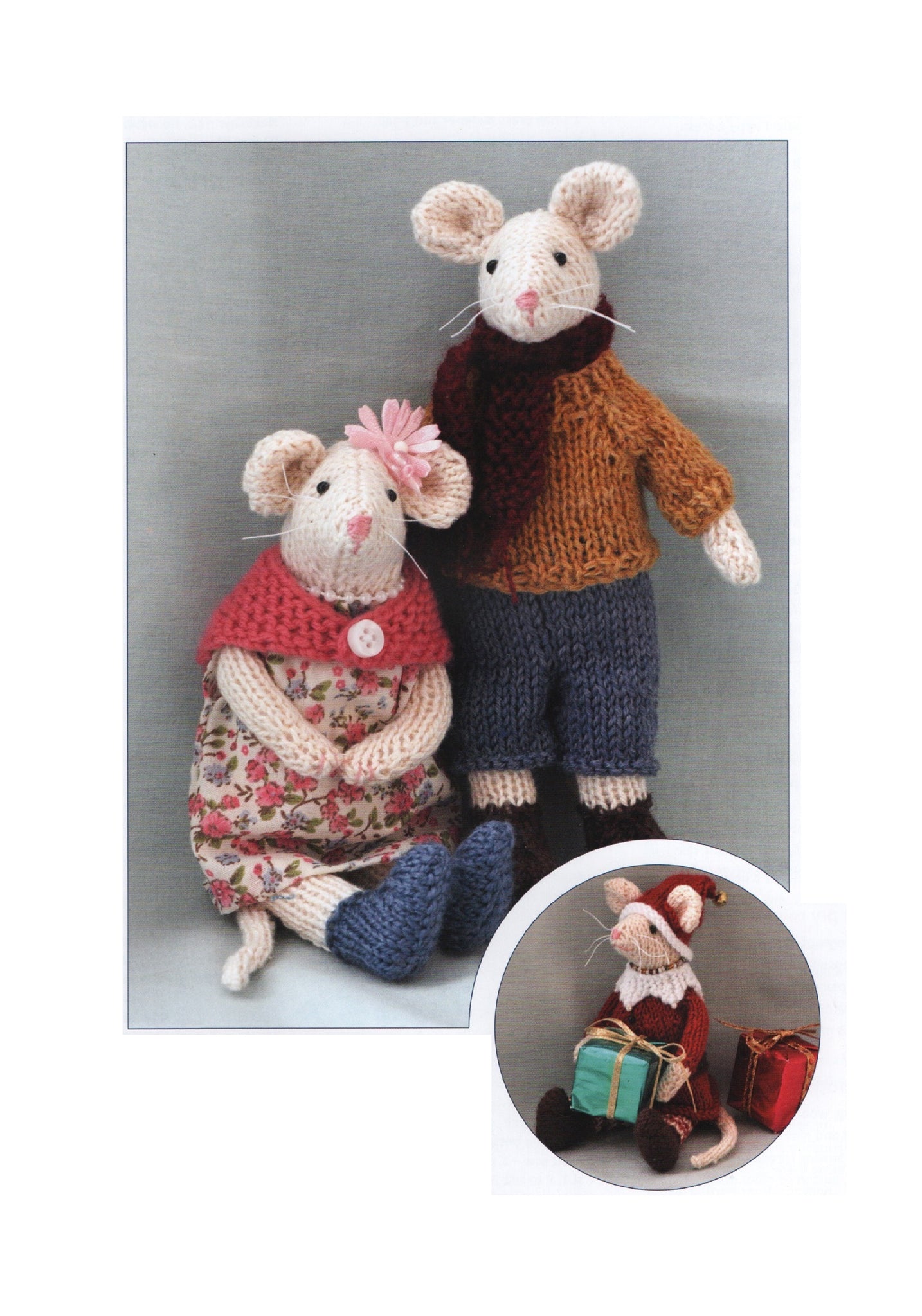 Each knitting pattern will instruct how to make the two mice, approximately measuring 18–20 cm high, and their accessories, which consist of a shawl, scarf, dress, knickers (or shorts), sweaters, and elf wear.