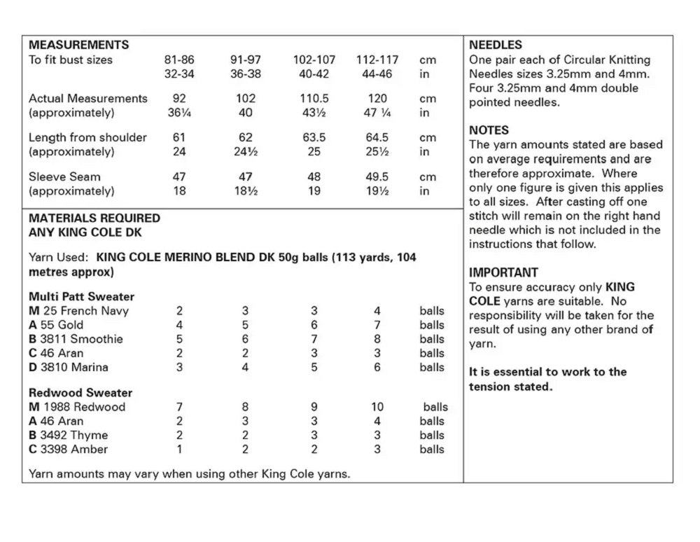 This King Cole knitting pattern is suitable for use with most double knit yarns; however, tensions may vary and we recommend you knit a tension square before knitting the whole garment and a pattern chart is supplieed in the leaflet.