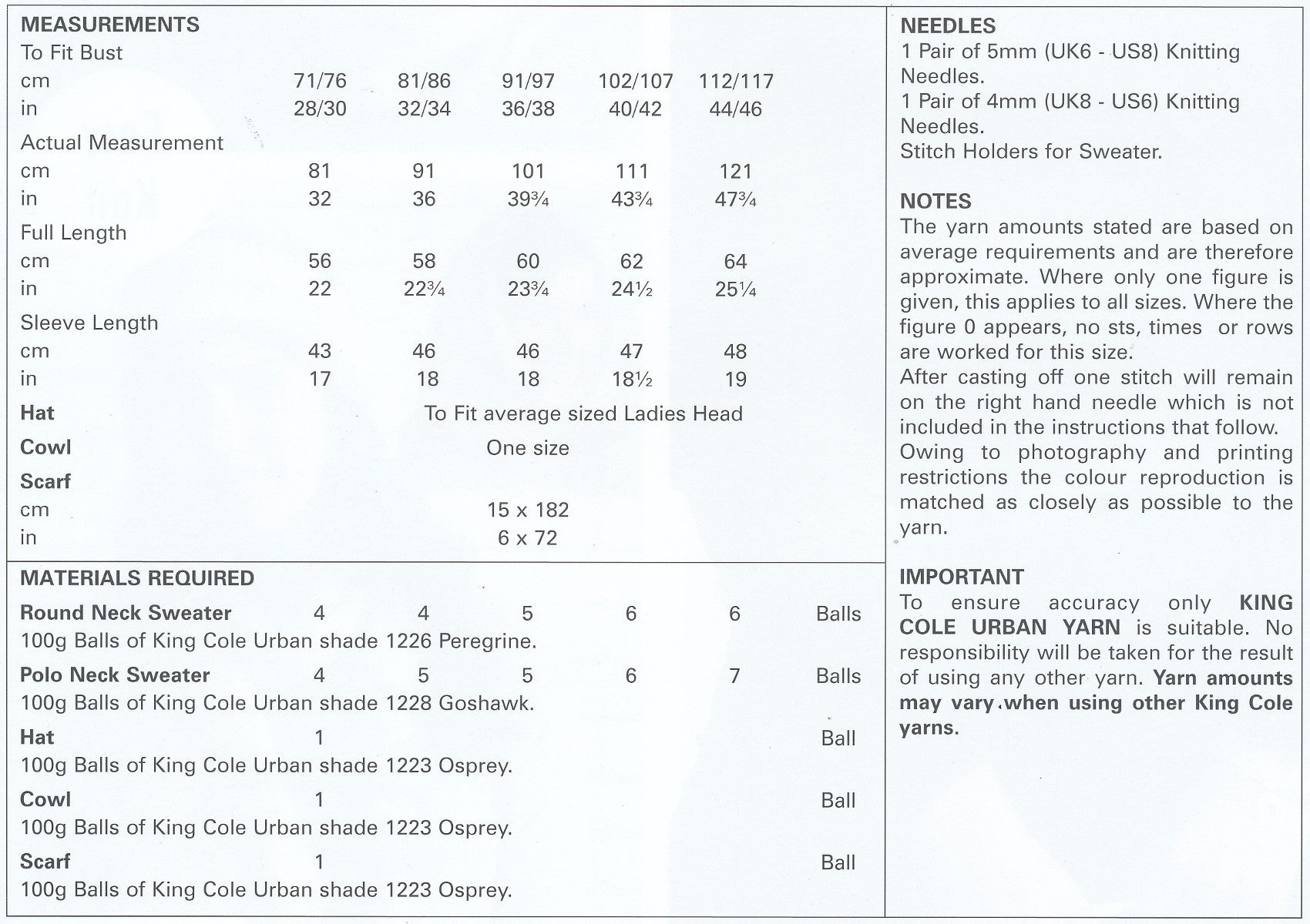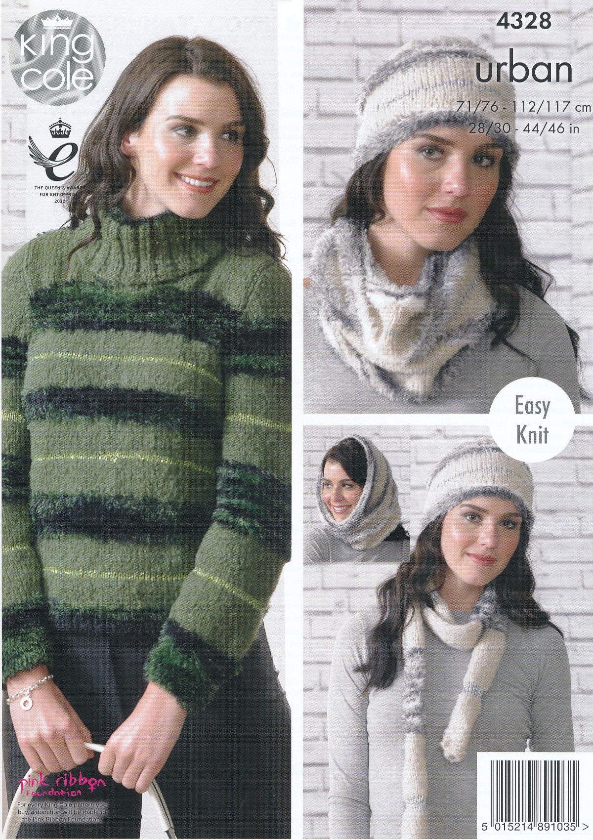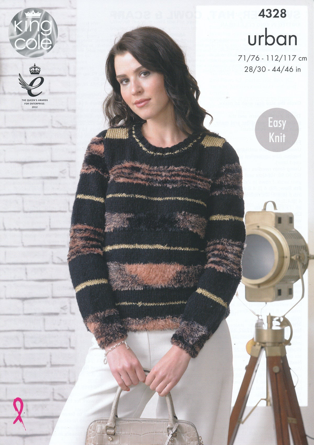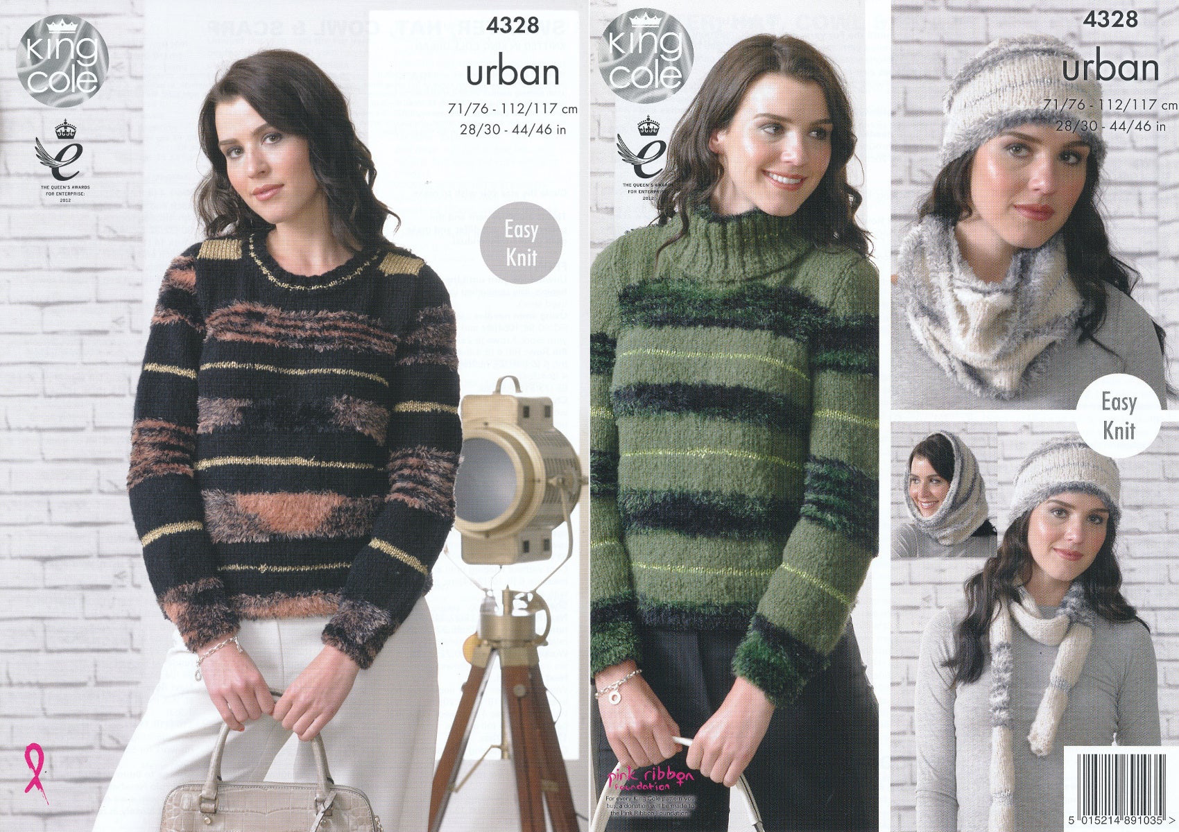 - Details: This is a King Cole easy knit pattern that instructs you how to knit ladies sweaters, hat, cowl and scarf, using Urban yarn.