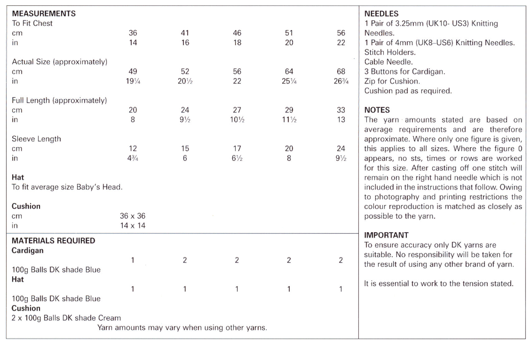 - Details: This is a UKHKA baby double knitting pattern that instructs you how to knit a cardigan, a hat and a cushion.