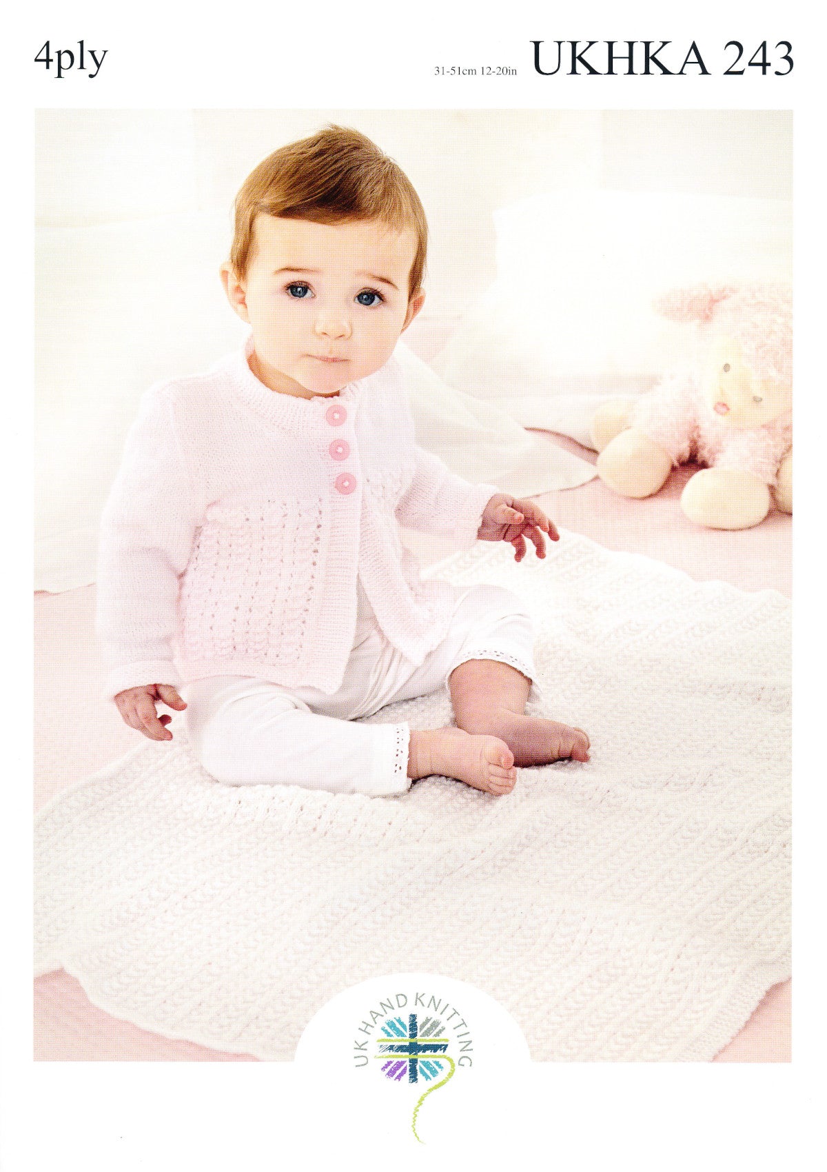 UKHKA 243 4ply Knitting Pattern - Baby Cardigans & Blanket