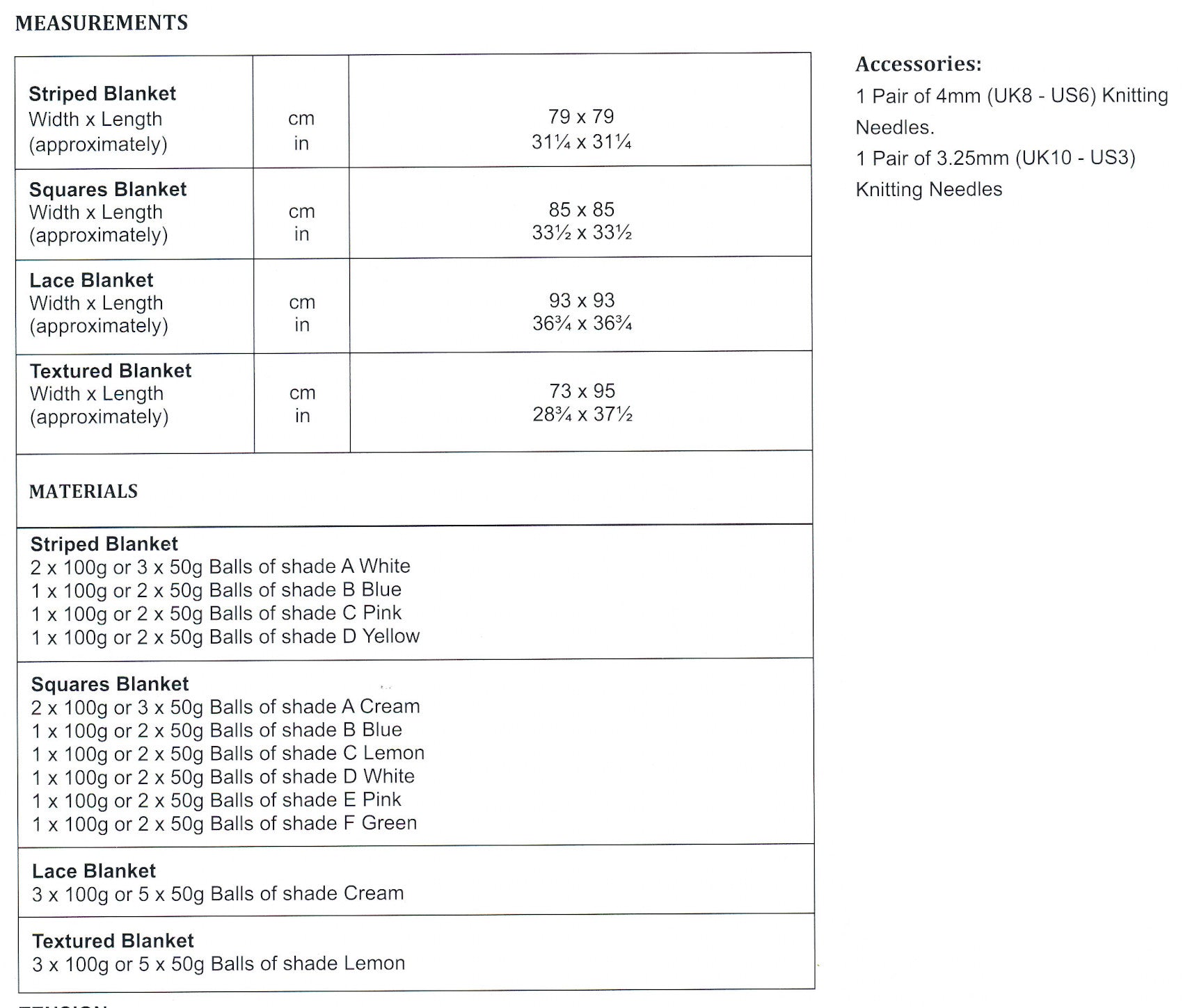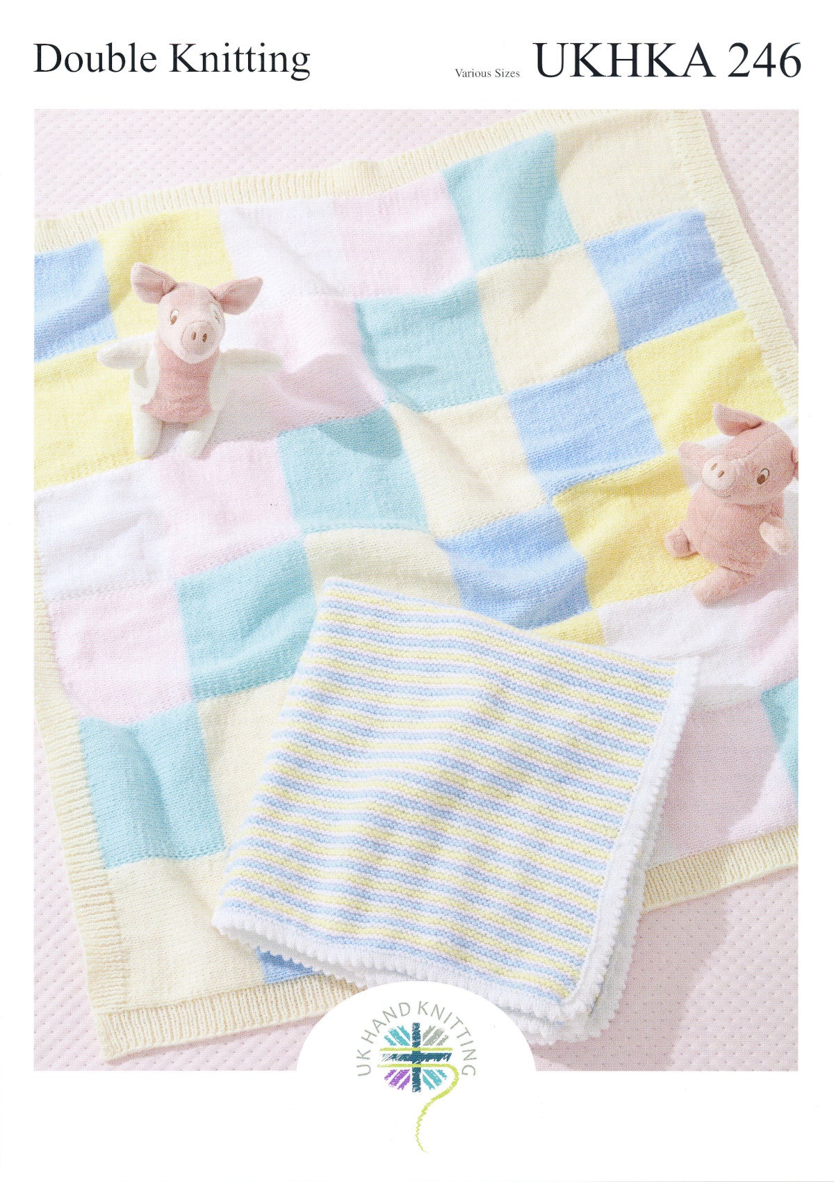 - Details: This is a UKHKA baby DK knitting pattern that instructs you how to knit blankets in four designs - striped, squares, lace or textured.