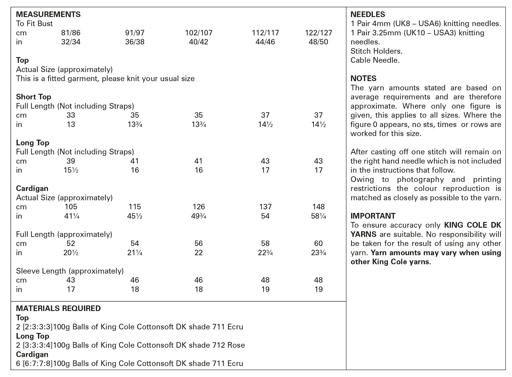 - Details: This is a King Cole double knitting pattern that instructs you on how to knit a lady's cardigan and top with cable detail, using Cottonsoft DK yarn.